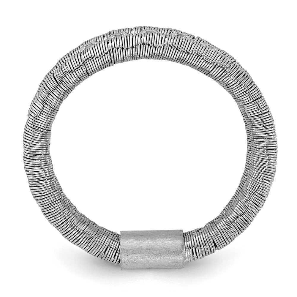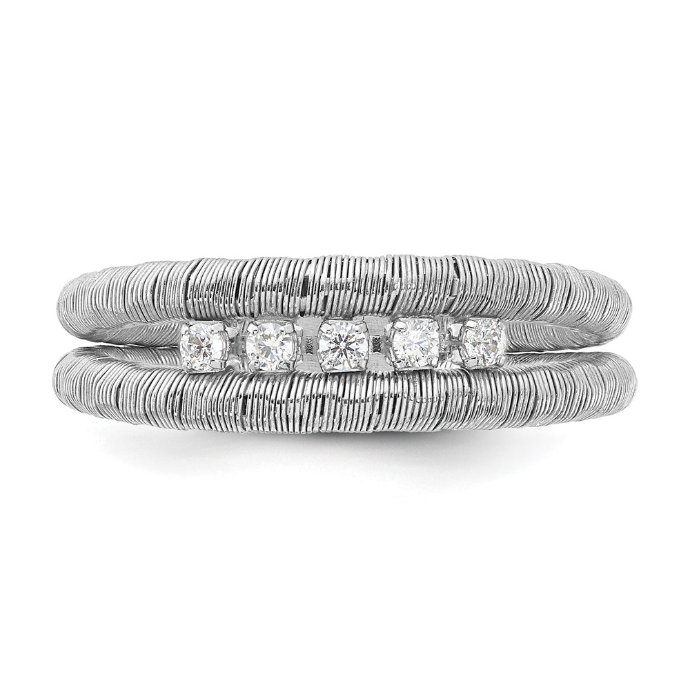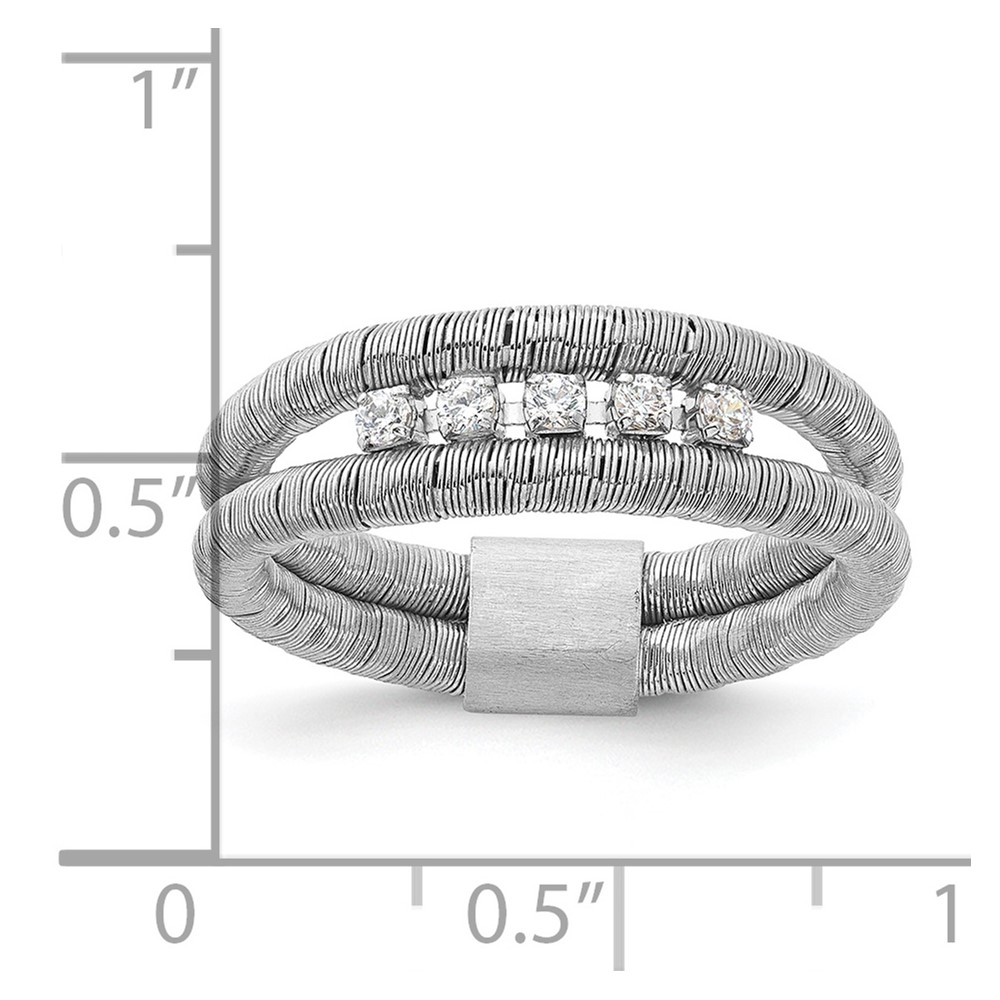 Sterling Silver Rhodium-plated CZ Wire Wrapped 2 Row Size 10 Ring