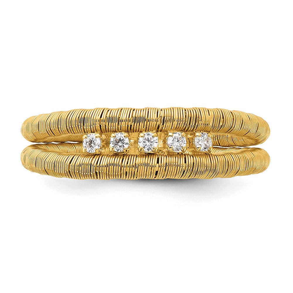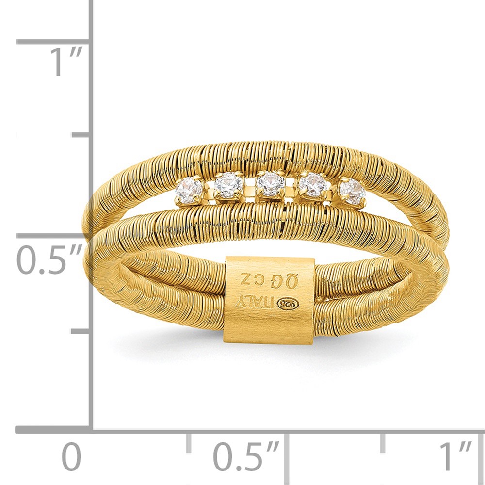Sterling Silver Gold-plated CZ Wire Wrapped 2 Row Size 9 Ring