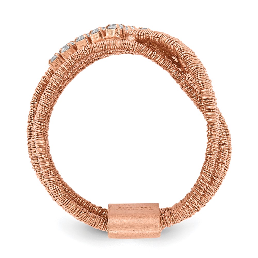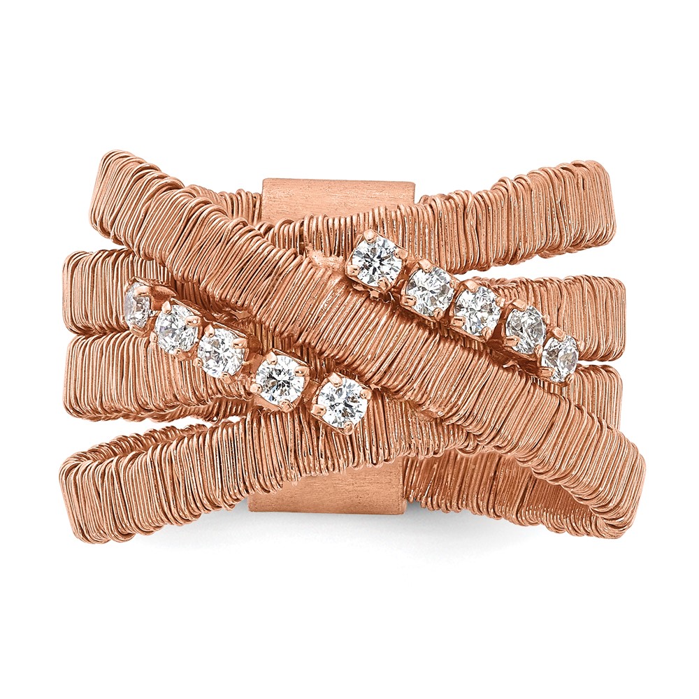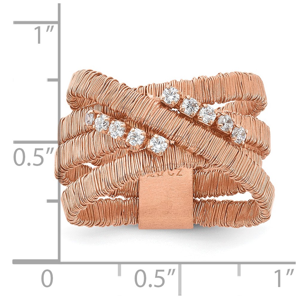 Sterling Silver Rose Gold-plated CZ 4 Row Wire Wrapped Size 9 Ring