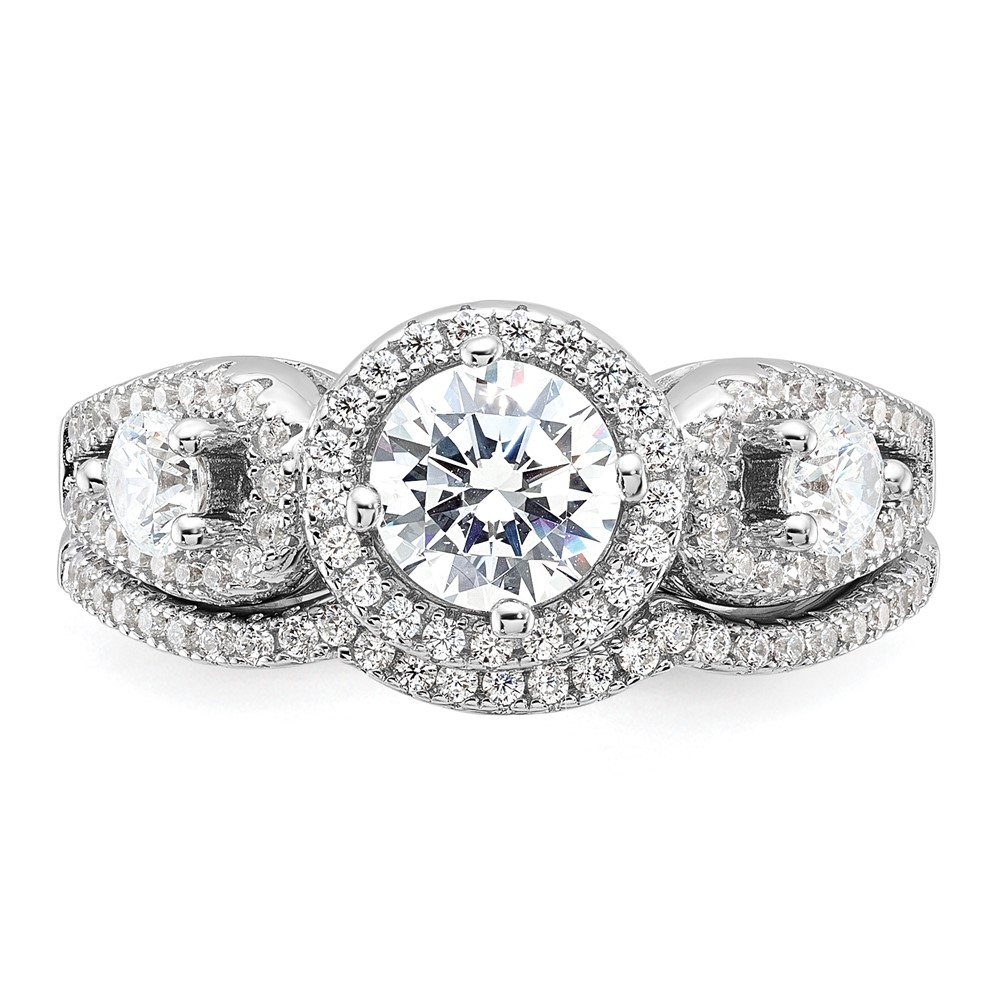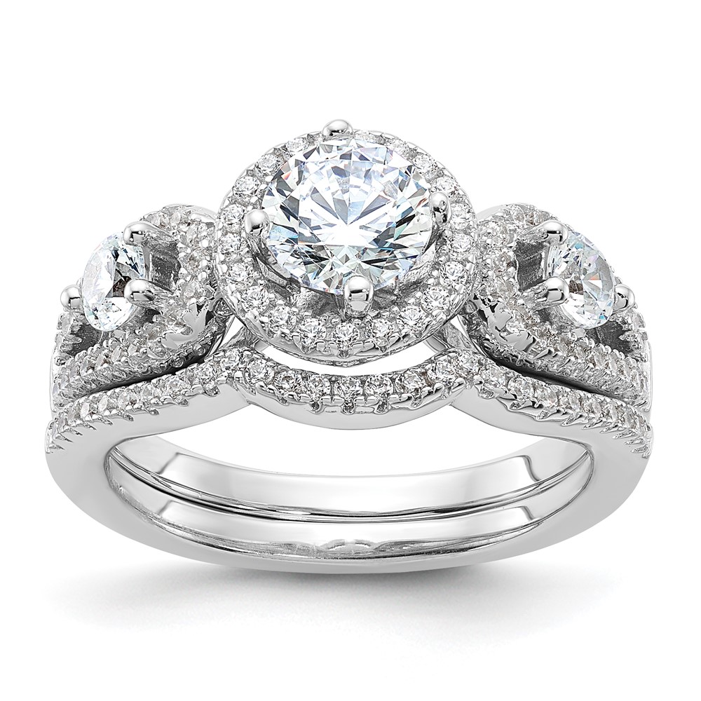 Brilliant Embers Sterling Silver Rhodium-plated 93 Stone Micro Pavé CZ 2-piece Wedding Set