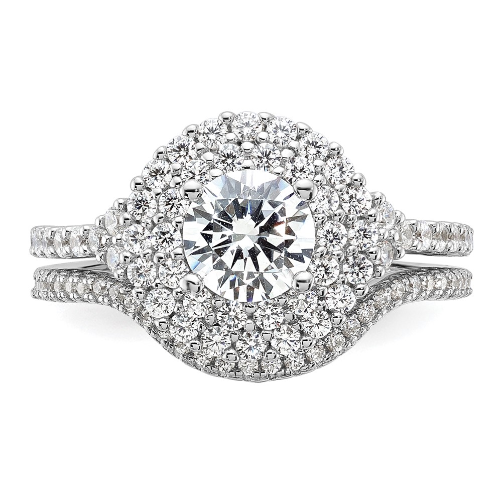 Brilliant Embers Sterling Silver Rhodium-plated 86 Stone Micro Pavé CZ 2-piece Wedding Set