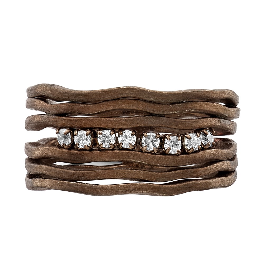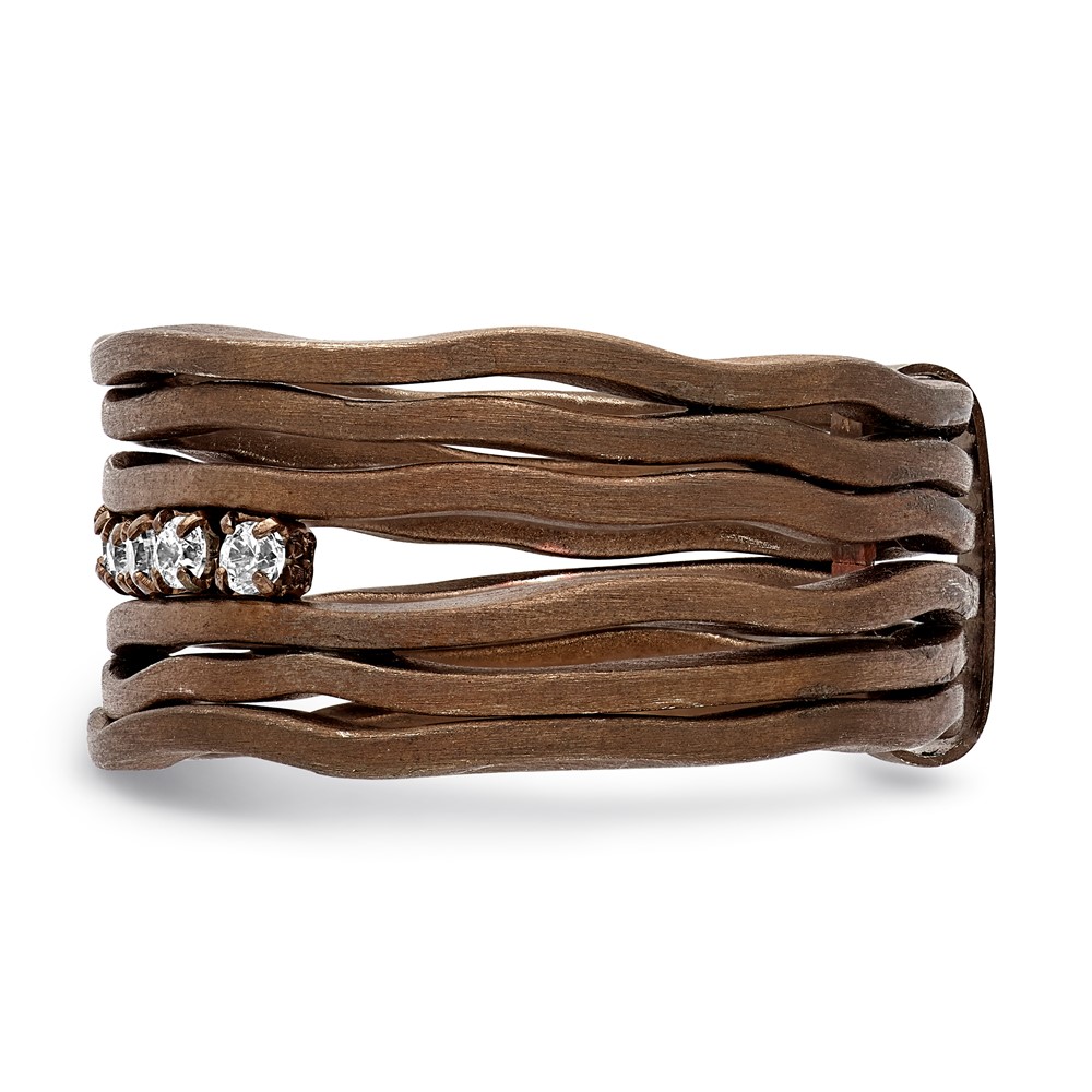Sterling Silver Satin finish multirow CZ ring-Chocolate