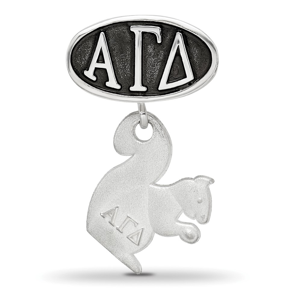 Sterling Silver Logoart Alpha Gamma Delta Oval With Squirrel Dangle Bead