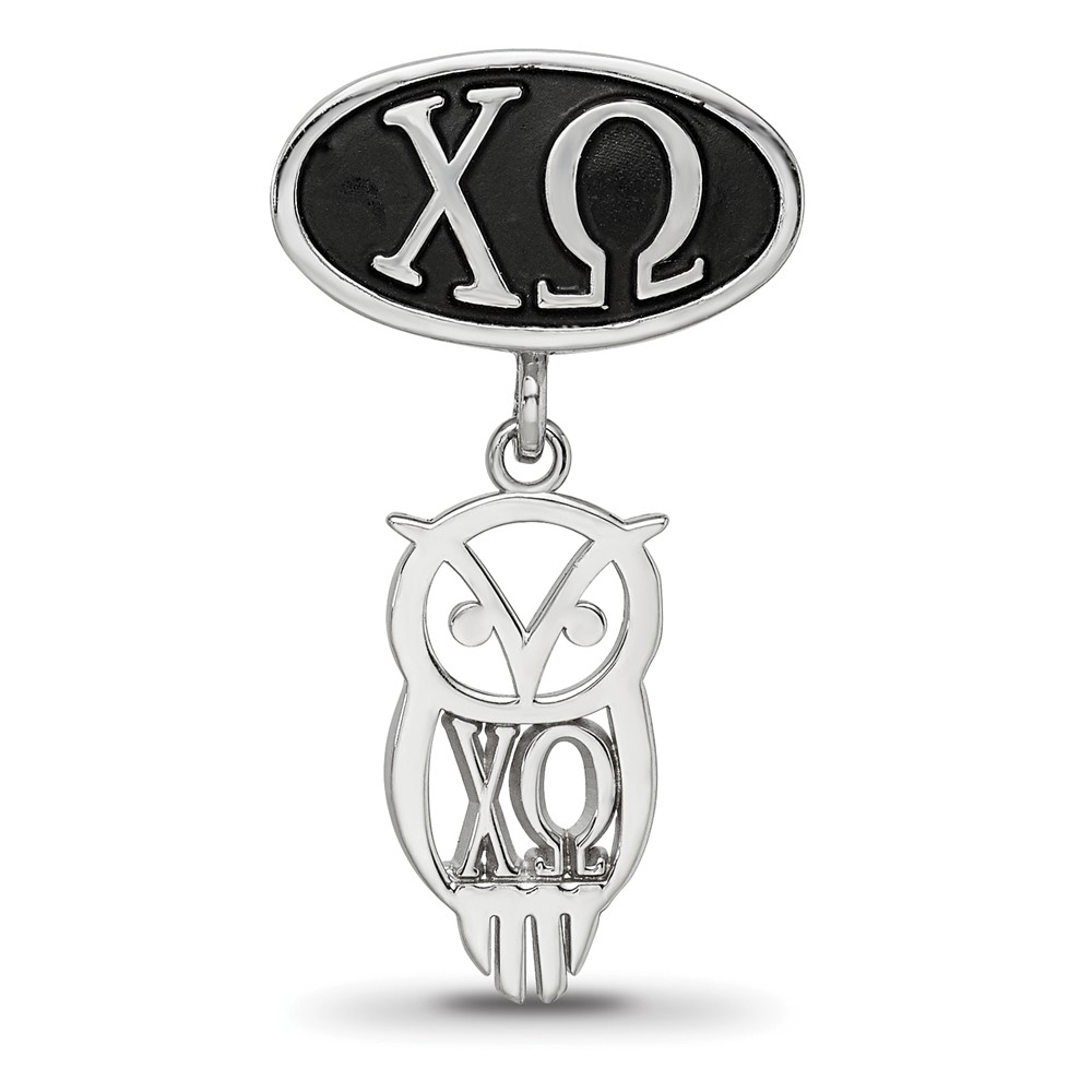 Sterling Silver LogoArt Chi Omega Sorority Greek Letters Enameled Oval with Owl Dangle Bead