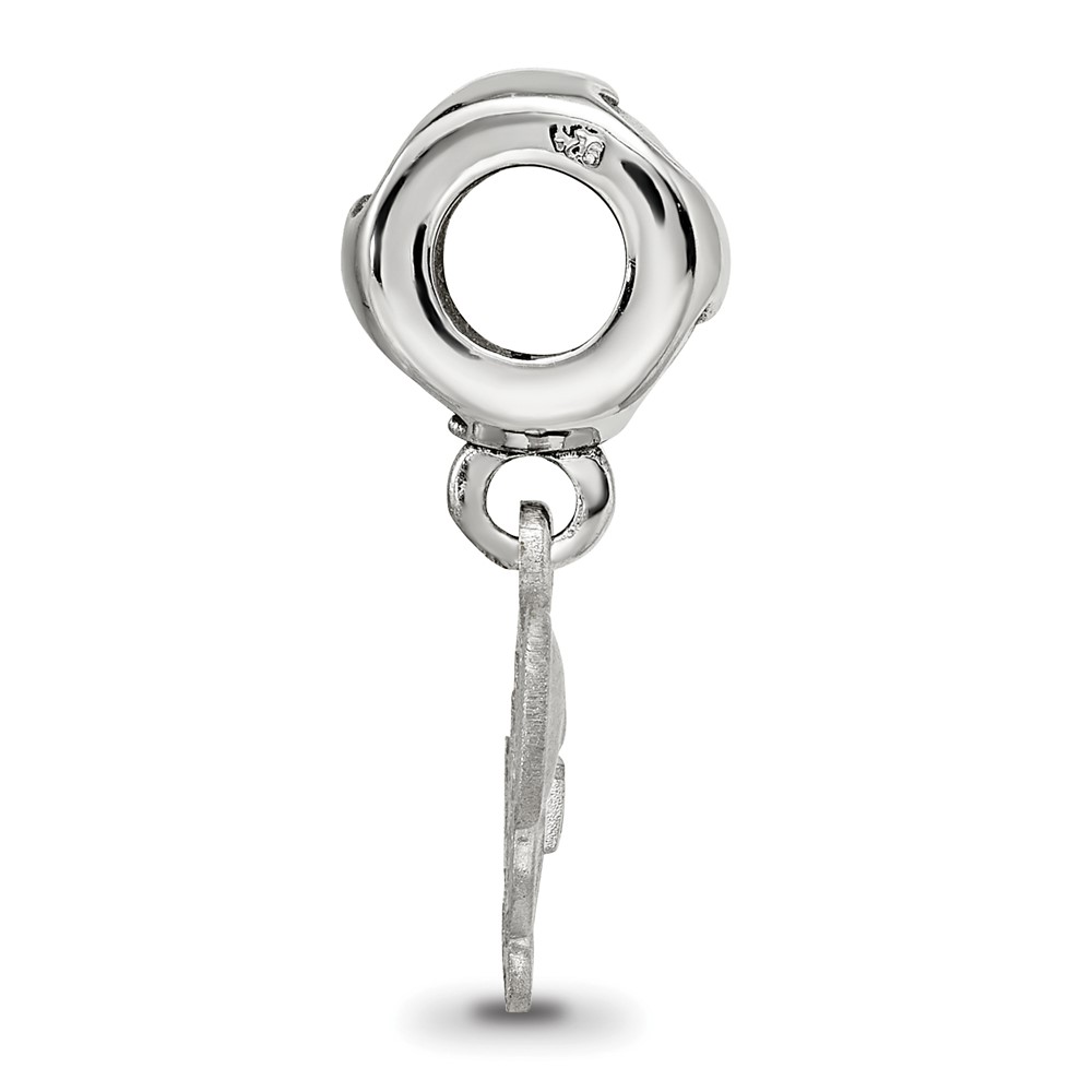 Sterling Silver Rhodium-plated LogoArt Delta Zeta Turtle on Heart Bead