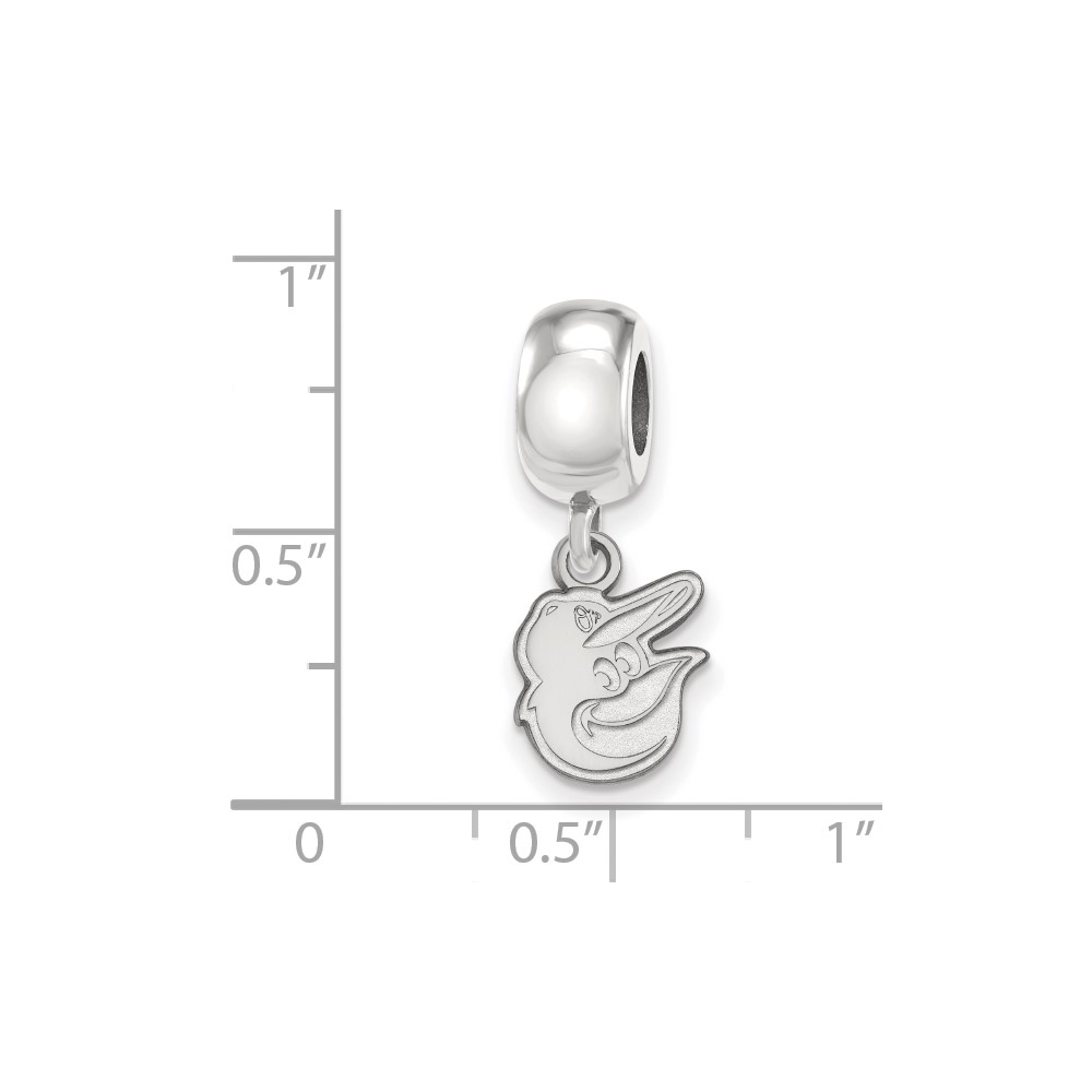 Sterling Silver Rhodium Plated Major League Baseball LogoArt Baltimore Orioles Extra Small Dangle Bead