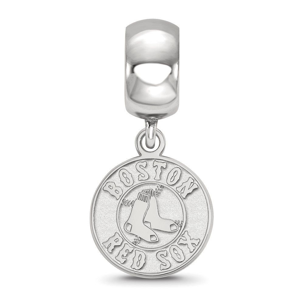 Sterling Silver Rhodium Plated Major League Baseball LogoArt Boston Red Sox Small Dangle Bead