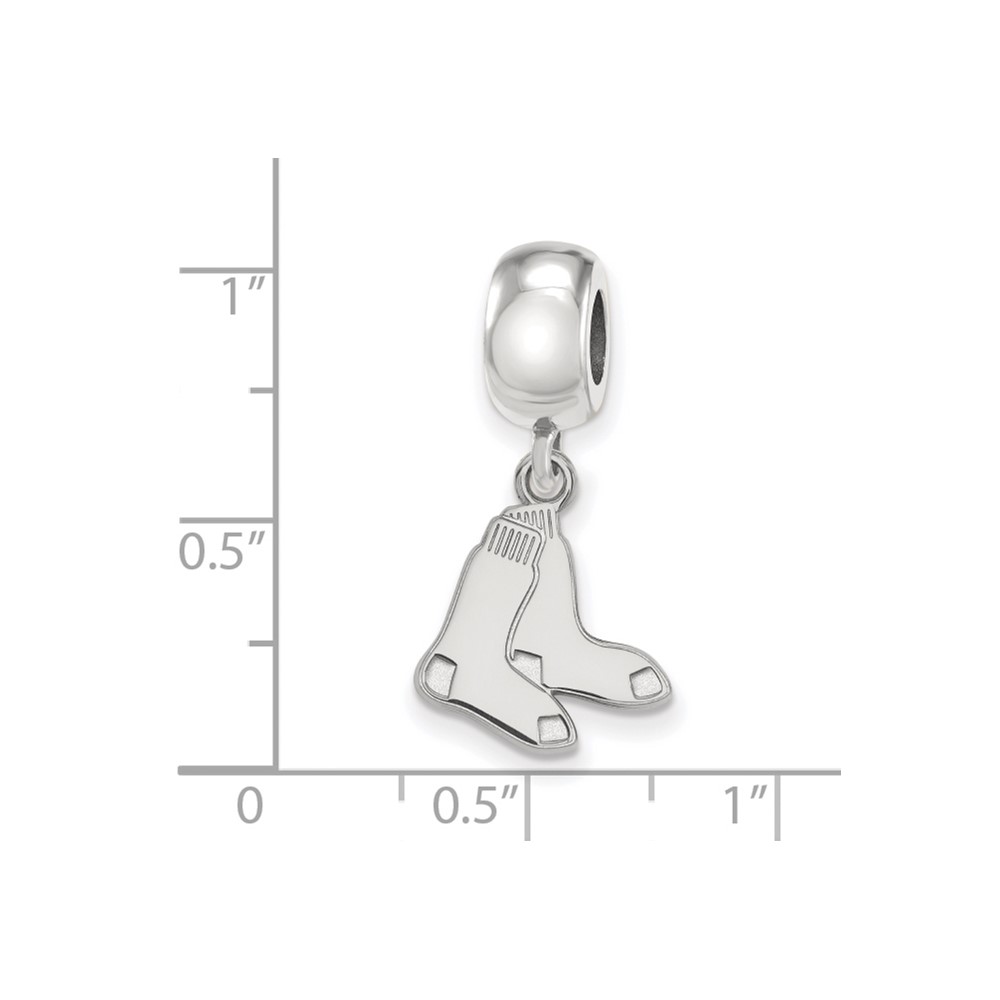 Sterling Silver Rhodium Plated Major League Baseball LogoArt Boston Red Sox Small Dangle Bead
