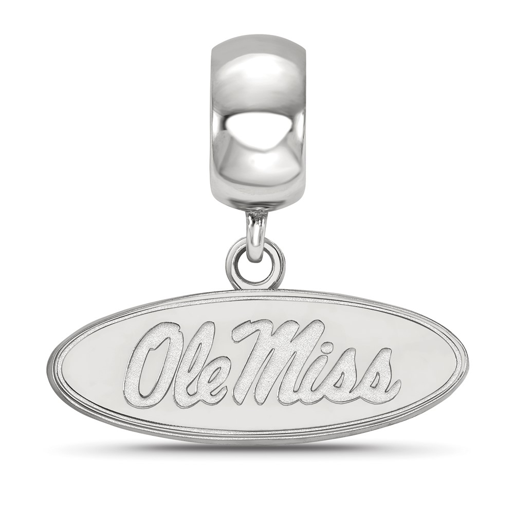 Sterling Silver Rhodium-plated LogoArt University of Mississippi Ole Miss Small Oval Dangle Bead Charm