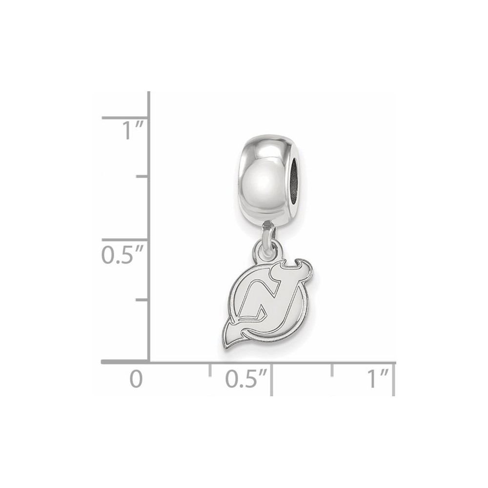 Sterling Silver Rhodium-plated NHL LogoArt New Jersey Devils Extra Small Dangle Bead Charm