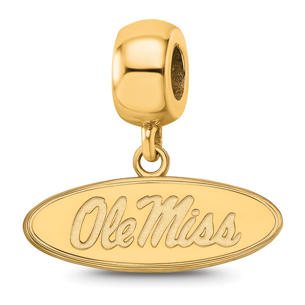 Sterling Silver Gold-plated LogoArt University of Mississippi Ole Miss Small Oval Dangle Bead Charm