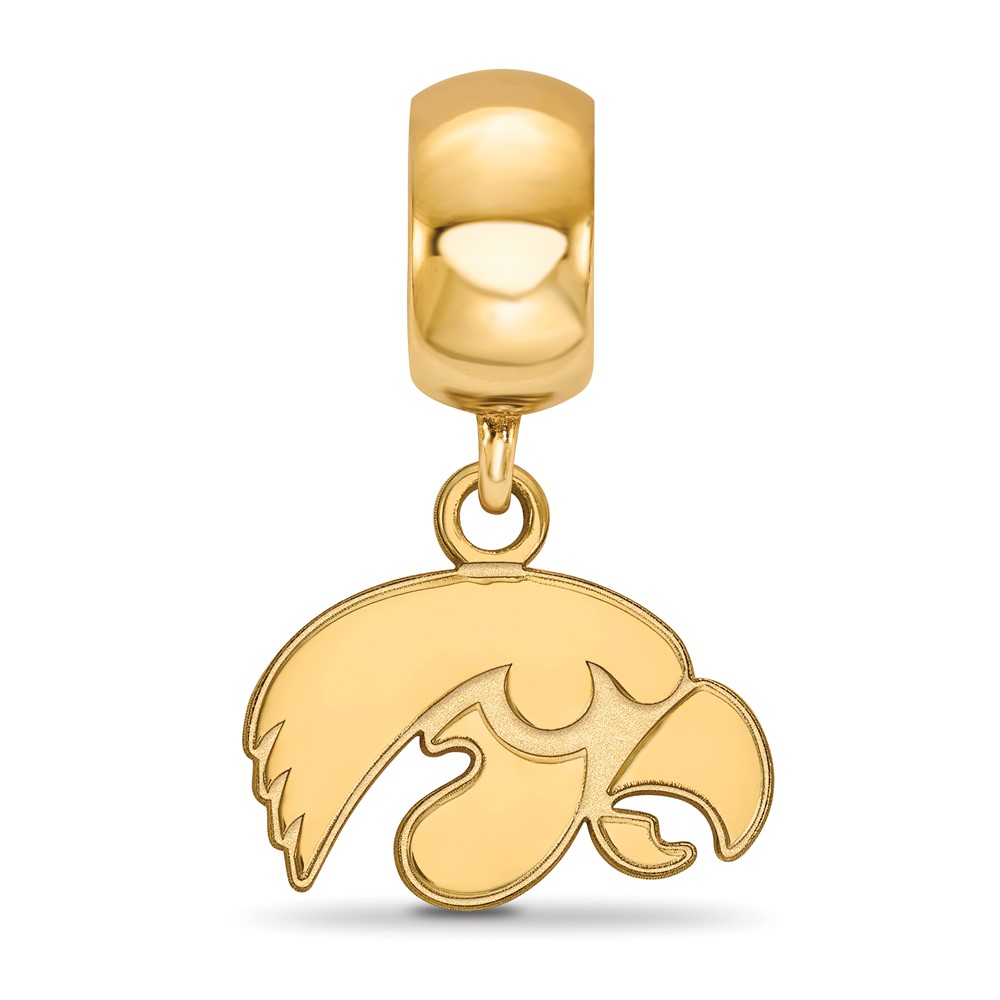 Sterling Silver Gold-plated LogoArt University of Iowa Hawk Extra Small Dangle Bead Charm