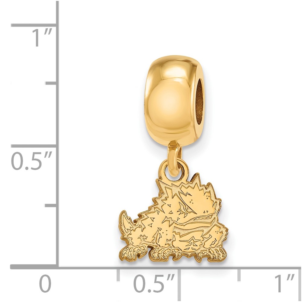 Sterling Silver Gold-plated LogoArt Texas Christian University Horned Frog Extra Small Dangle Bead Charm
