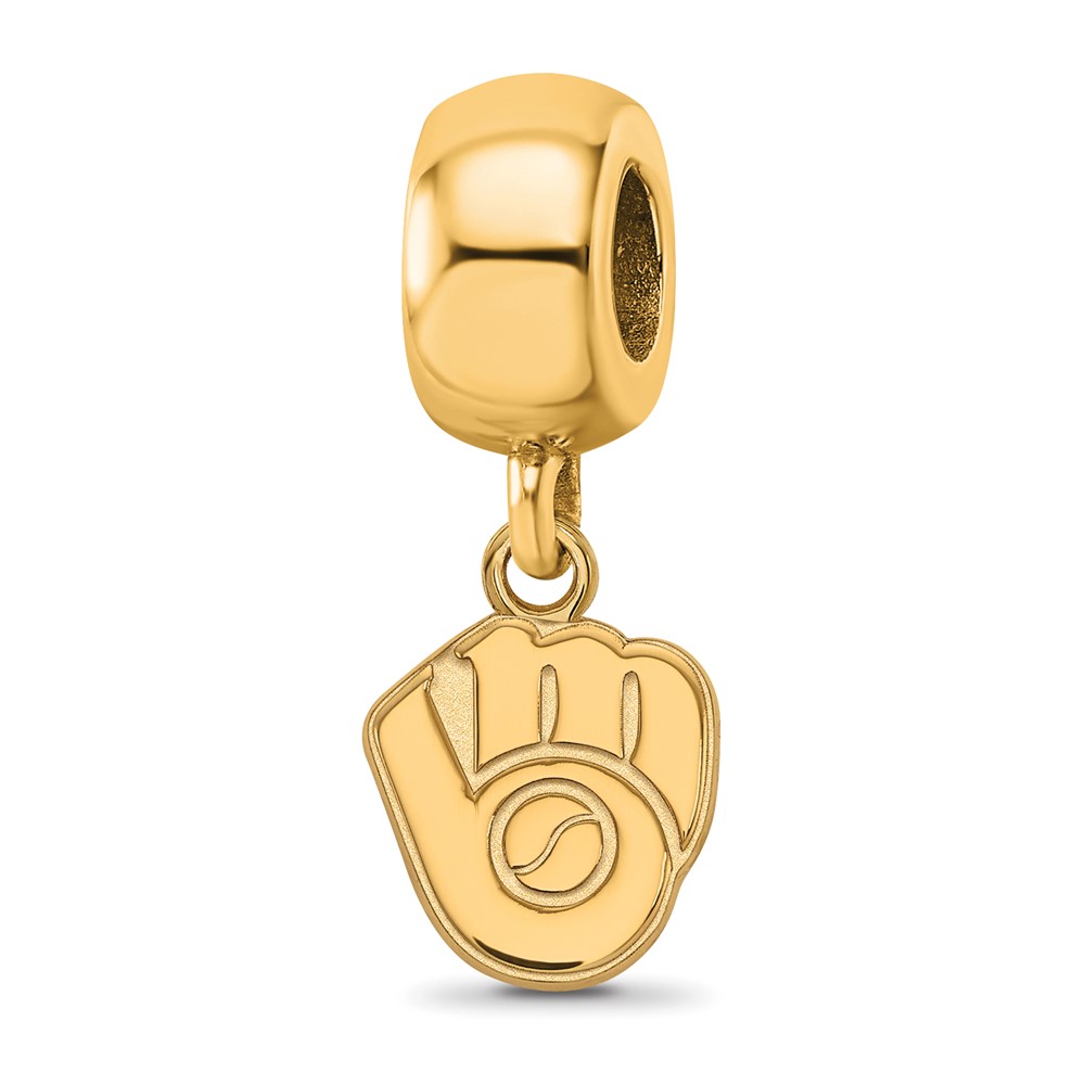 Sterling Silver Gold Plated Major League Baseball LogoArt Milwaukee Brewers Dangle Bead