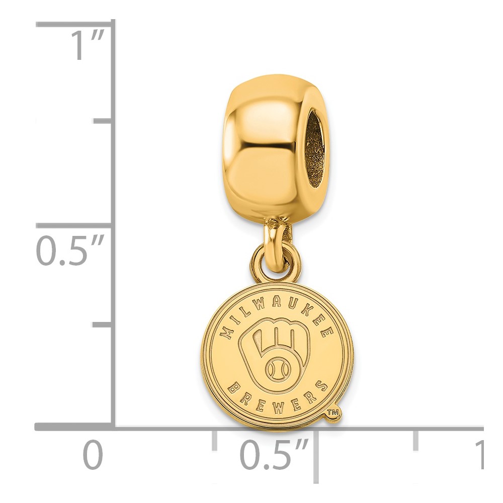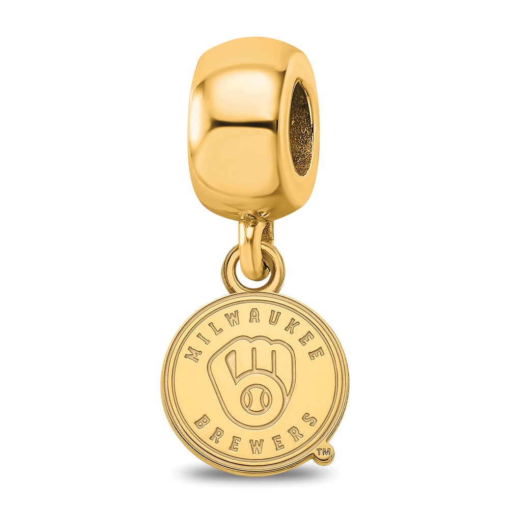 Sterling Silver Gold Plated Major League Baseball LogoArt Milwaukee Brewers Dangle Bead