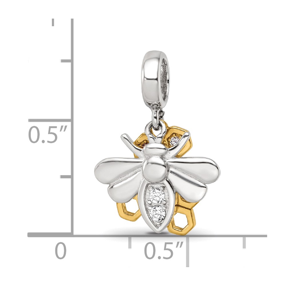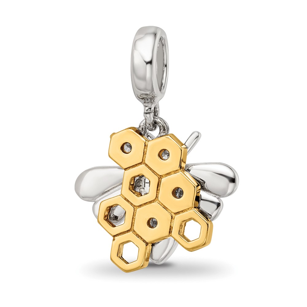 SS Reflections Rh-plated Goldplated CZ Honeycomb Bee 2-piece Dangle Bead