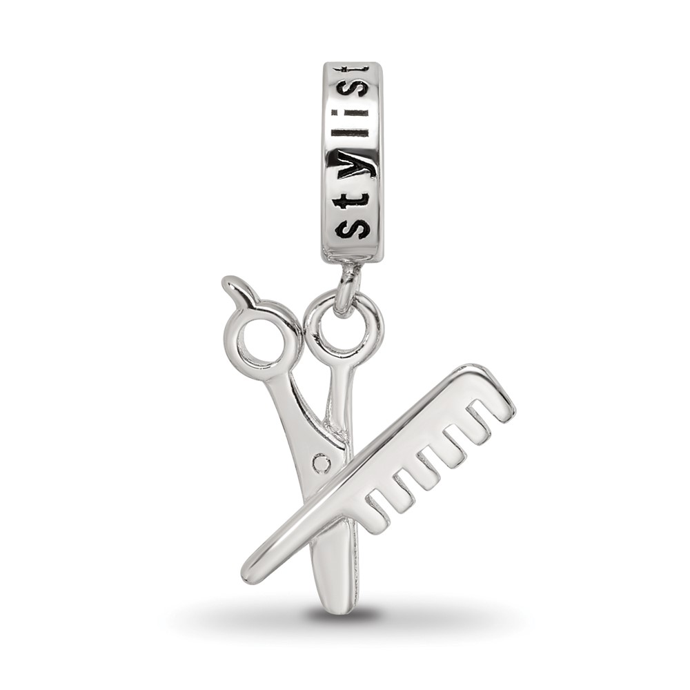 Sterling Silver Reflections Rhod-plated Scissor/Comb Dangle Bead