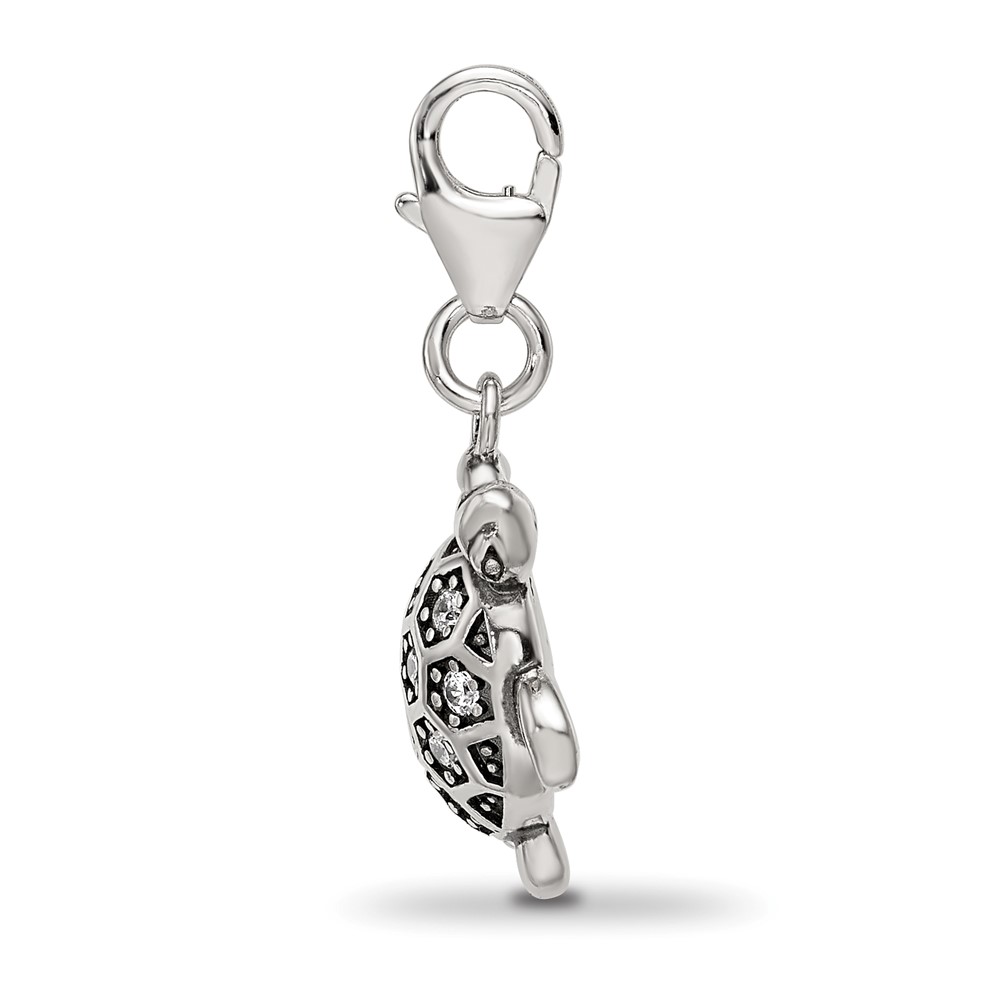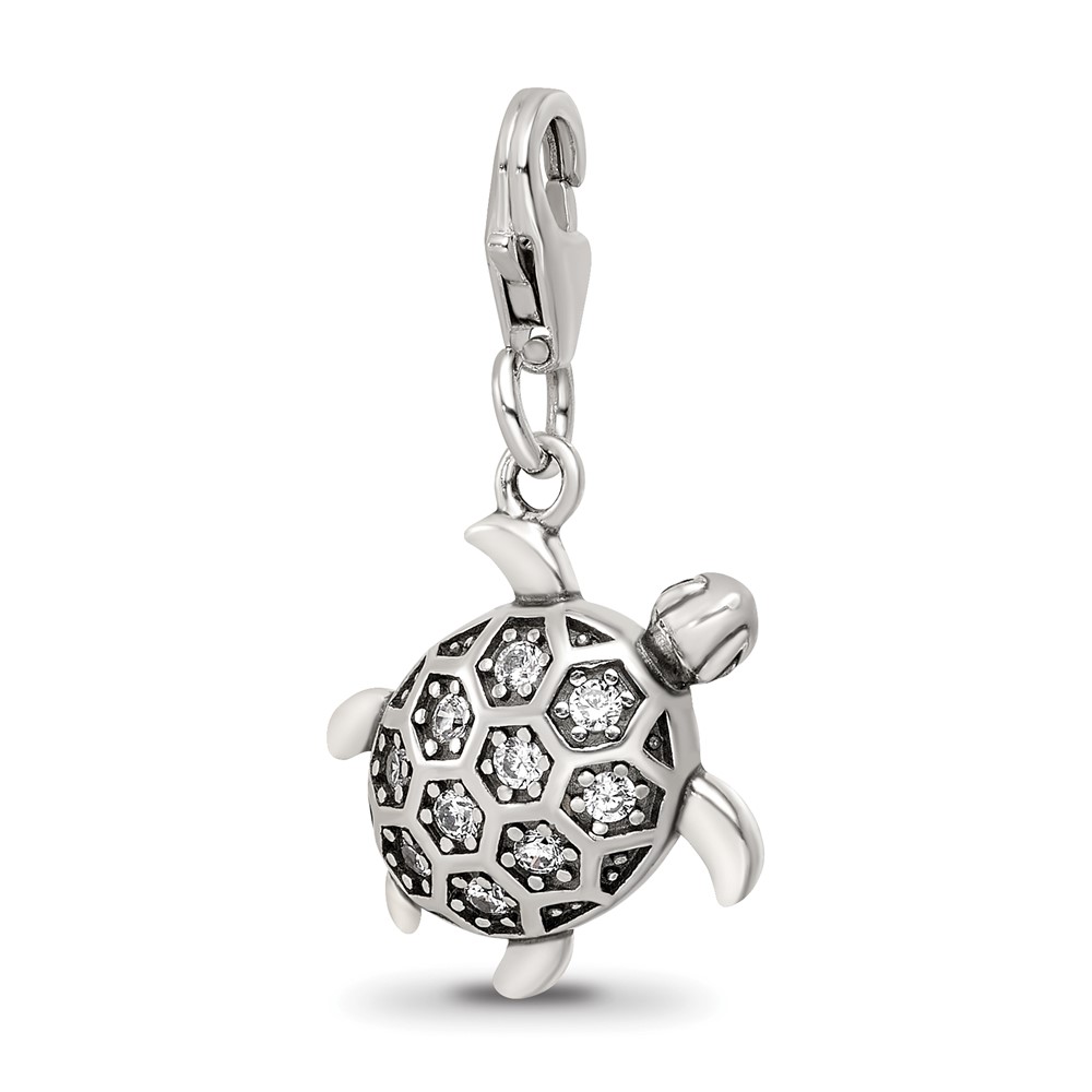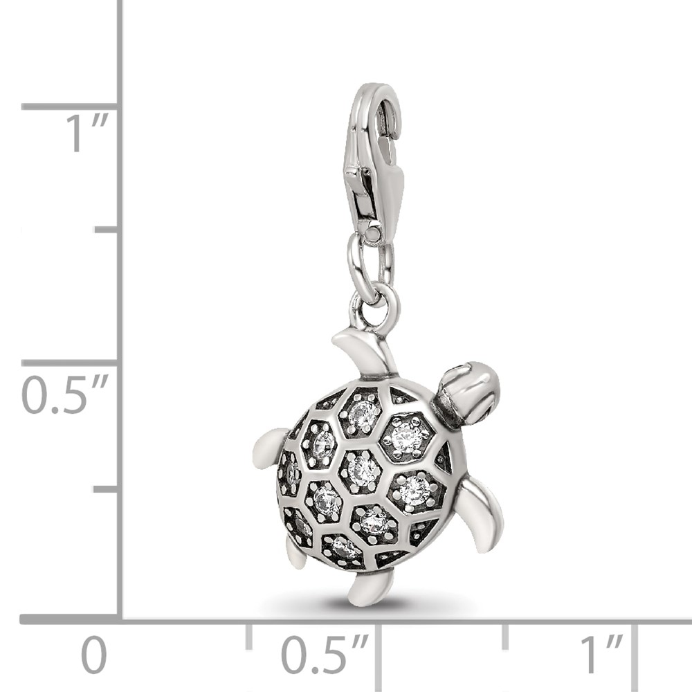 Sterling Silver Reflections Rhodium-plated CZ Sea Turtle Click-On Bead