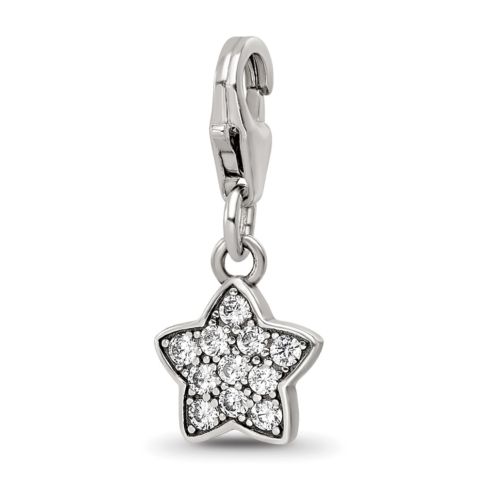 Sterling Silver Reflections Rhodium-plated CZ Star Click-On Bead