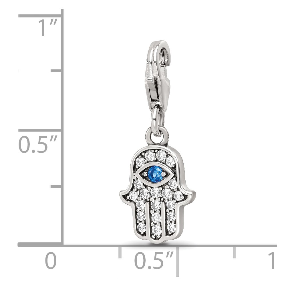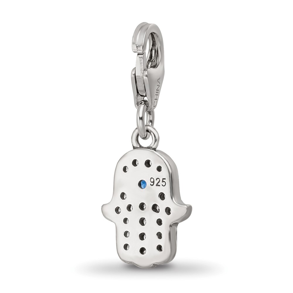SS Reflections Rhod-plated CZ & Blue Spinel Hamsa/Chamseh Click-On Bead