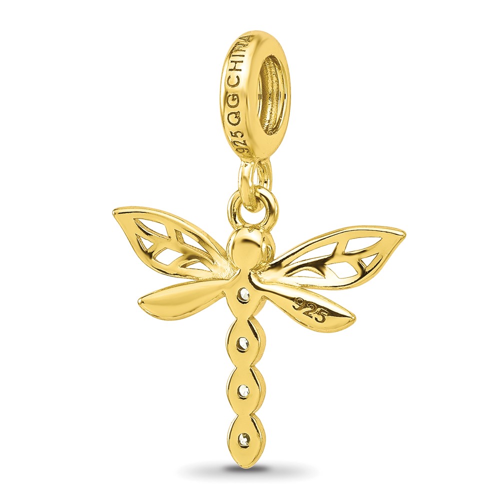Sterling Silver Reflections Gold-plated CZ and Enamel Dragonfly Dangle Bead