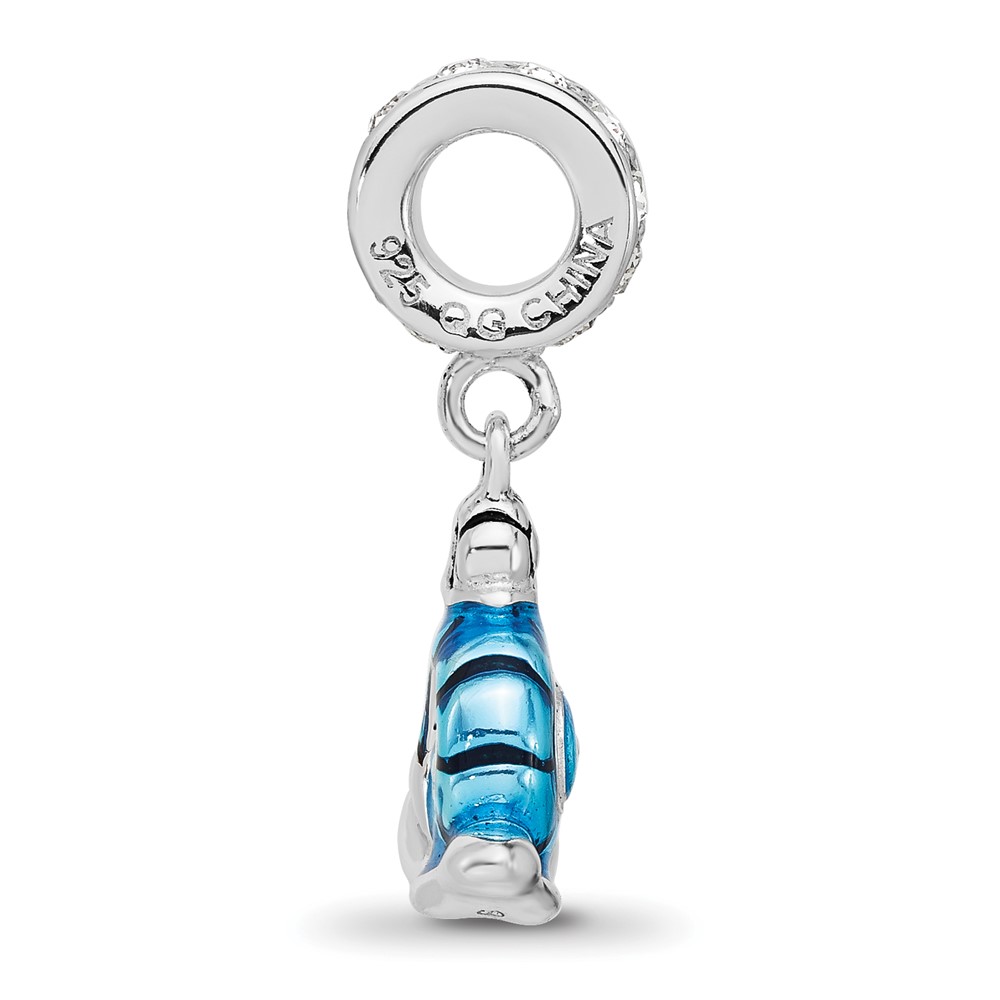 SS Reflections Rhodium-plated Crystal Blue Enamel Snail Dngle Bead