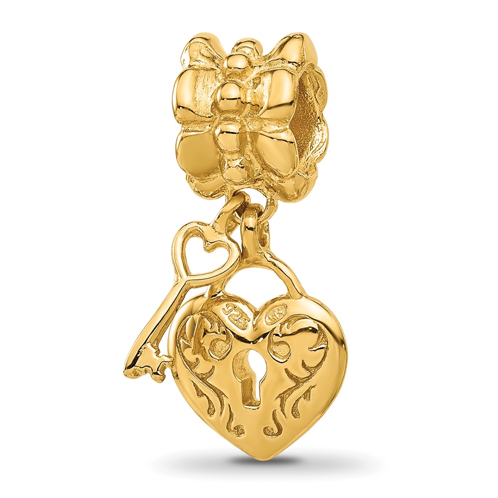 Sterling Silver Reflections Gold-plated Heart and Key Dangle Bead