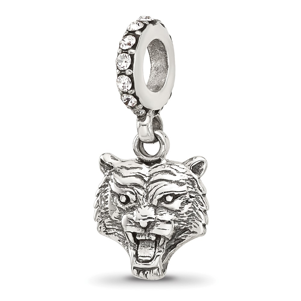 Sterling Silver Reflections Crystal Tiger Head Dangle Bead