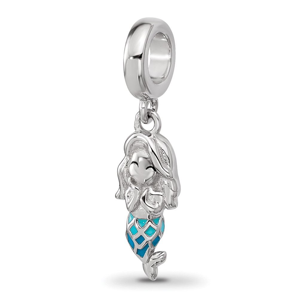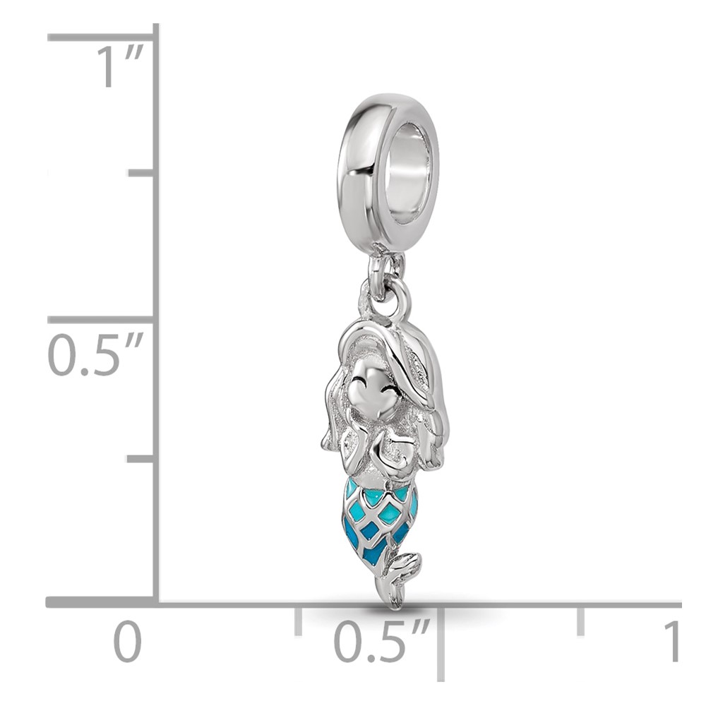 Sterling Silver Reflections Rh-plated Enamel Mermaid Dangle Bead