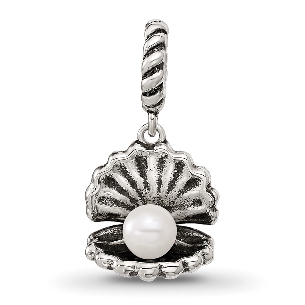 Sterling Silver Reflections Shell With Imitation Pearl Dangle Bead