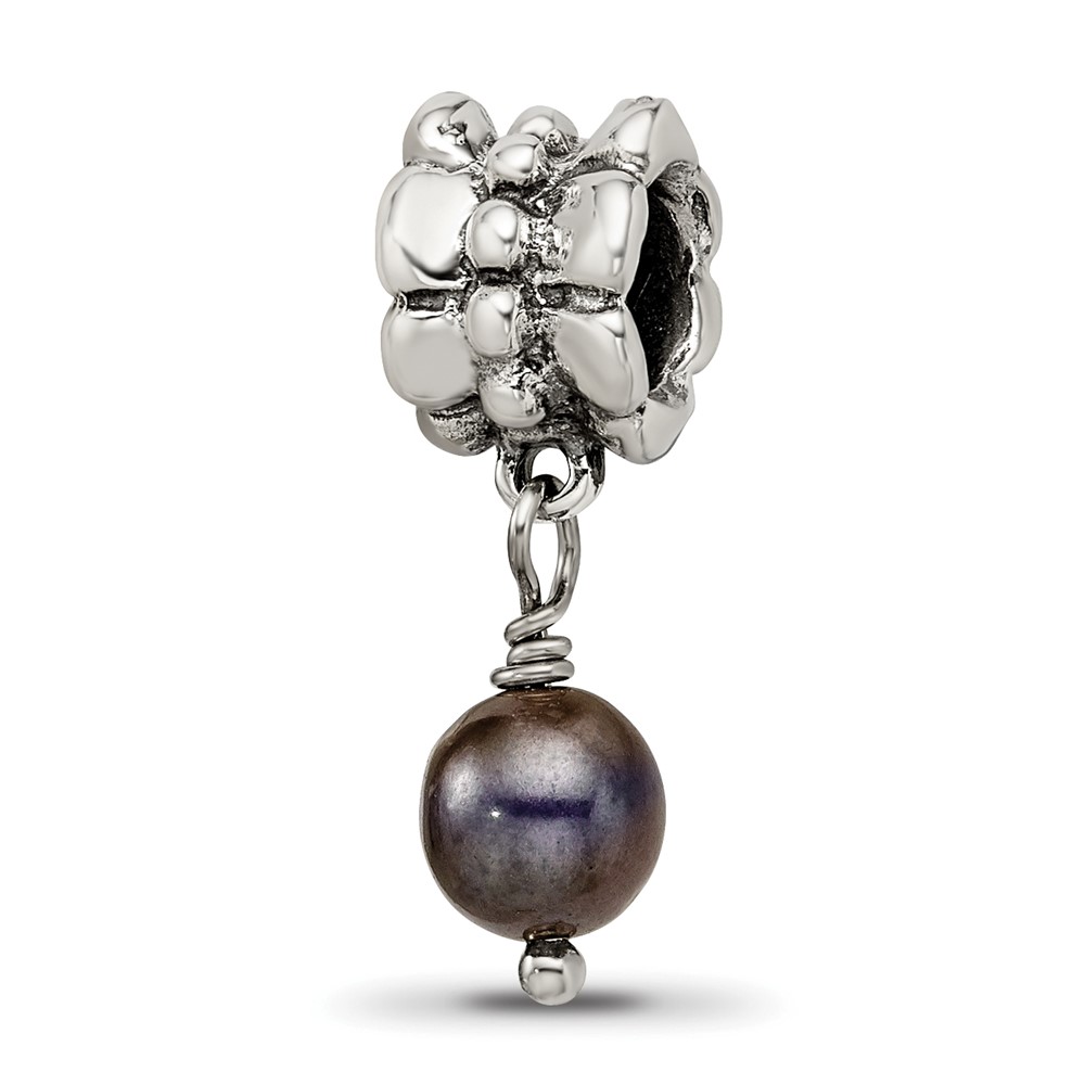 Sterling Silver Reflections Grey FW Cultured Pearl Dangle Bead