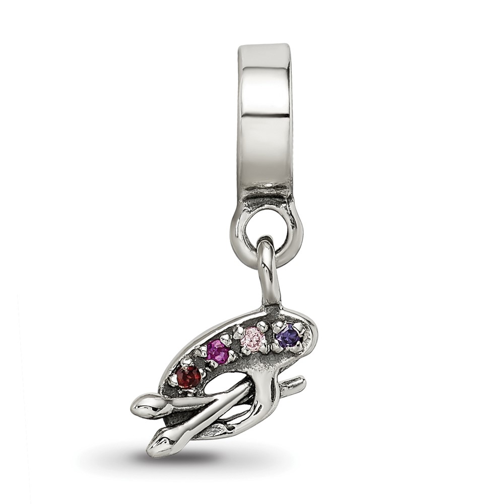Sterling Silver Reflections Artist Palette Multi-color CZ Dangle Bead