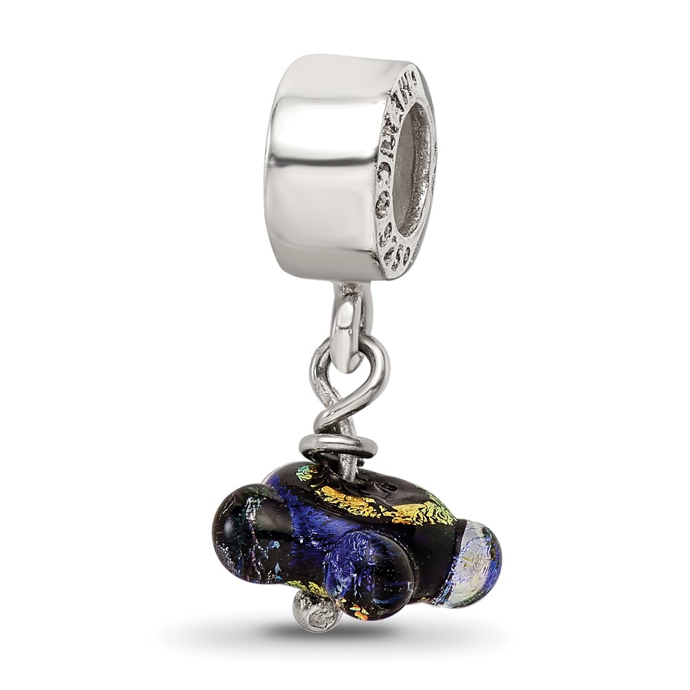 Sterling Silver Reflections Green Dichroic Glass Dangle Bead
