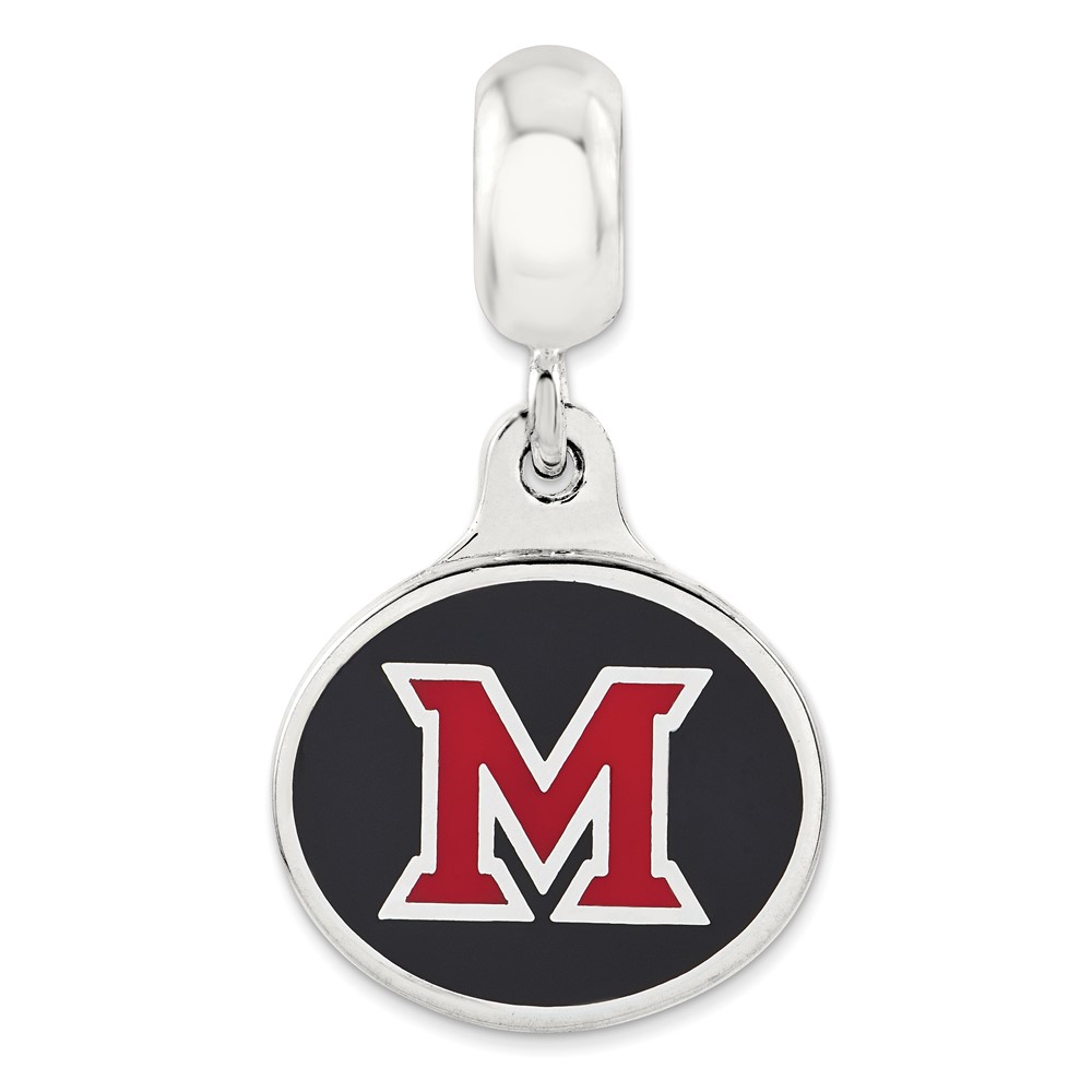 Sterling Silver Miami of Ohio University Collegiate Enameled Dangle Bead