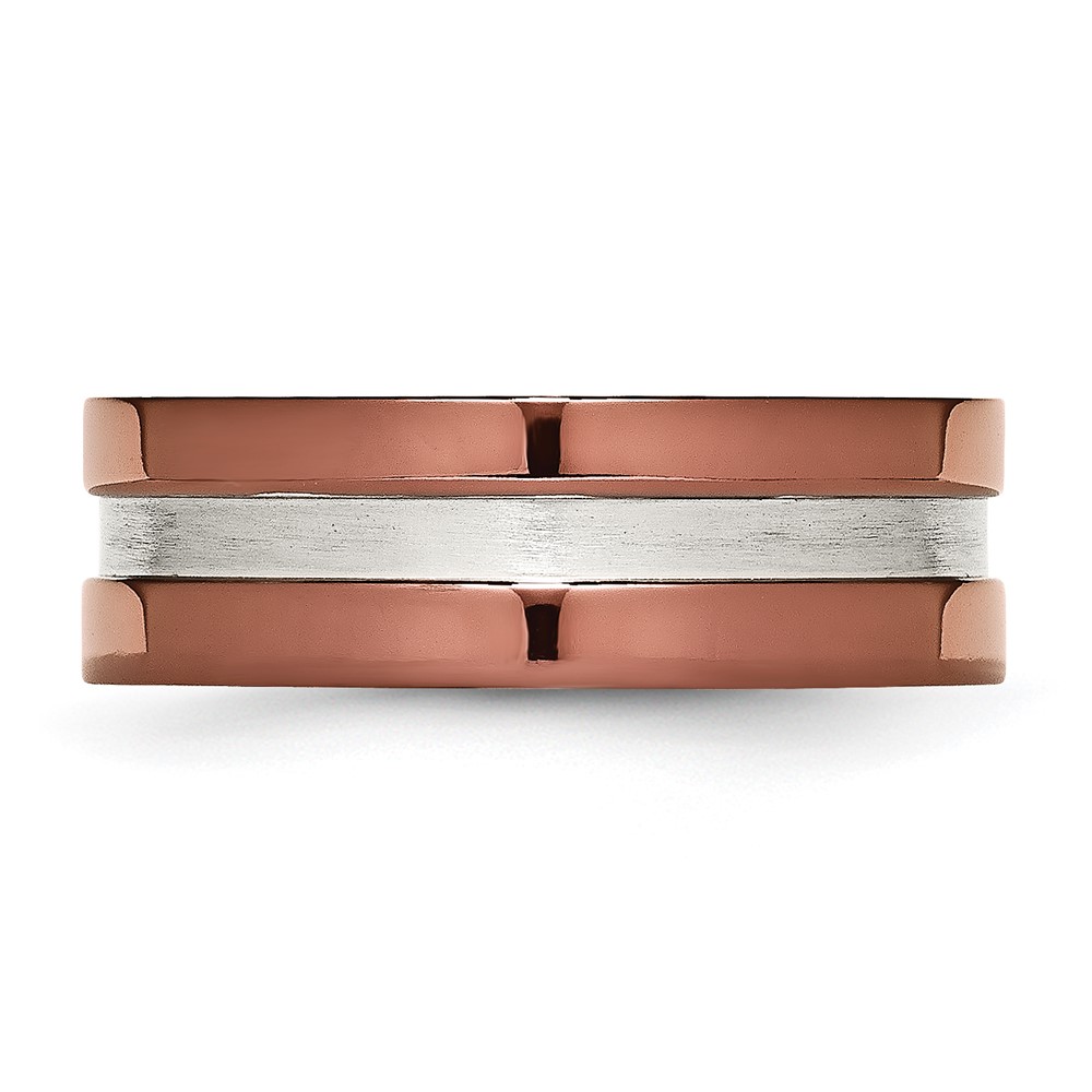 Stainless Steel 8mm Brown IP-plated Polished w/Brushed Center Band