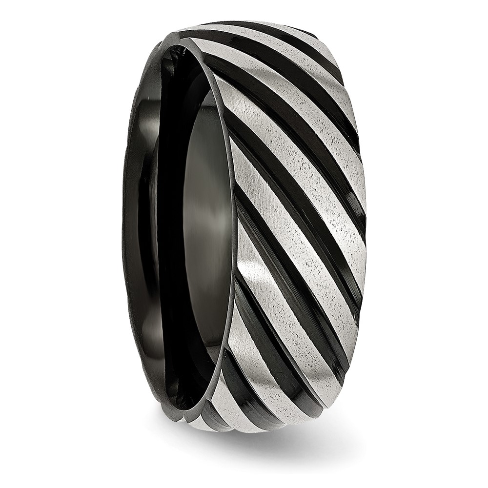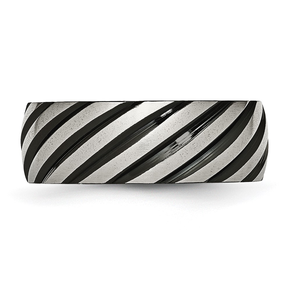Stainless Steel 8mm Black IP-plated Swirl Brushed & Polished Band