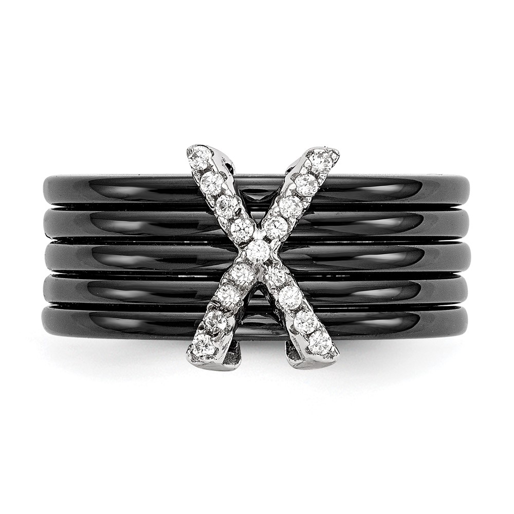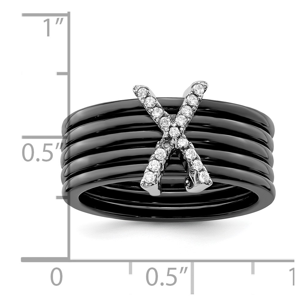 Brilliant Embers Sterling Silver Rhodium-plated 17 Stone Micro Pavé CZ X Ceramic Ring