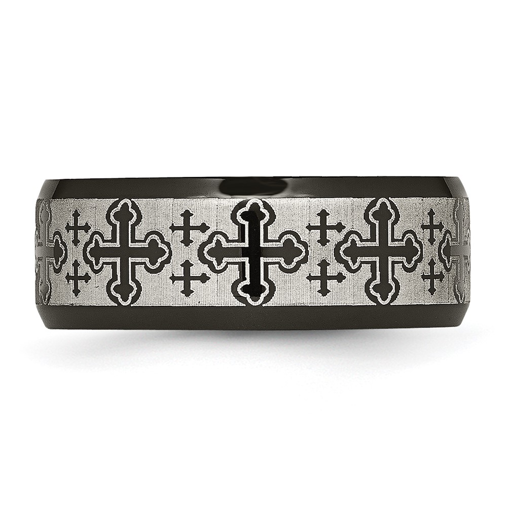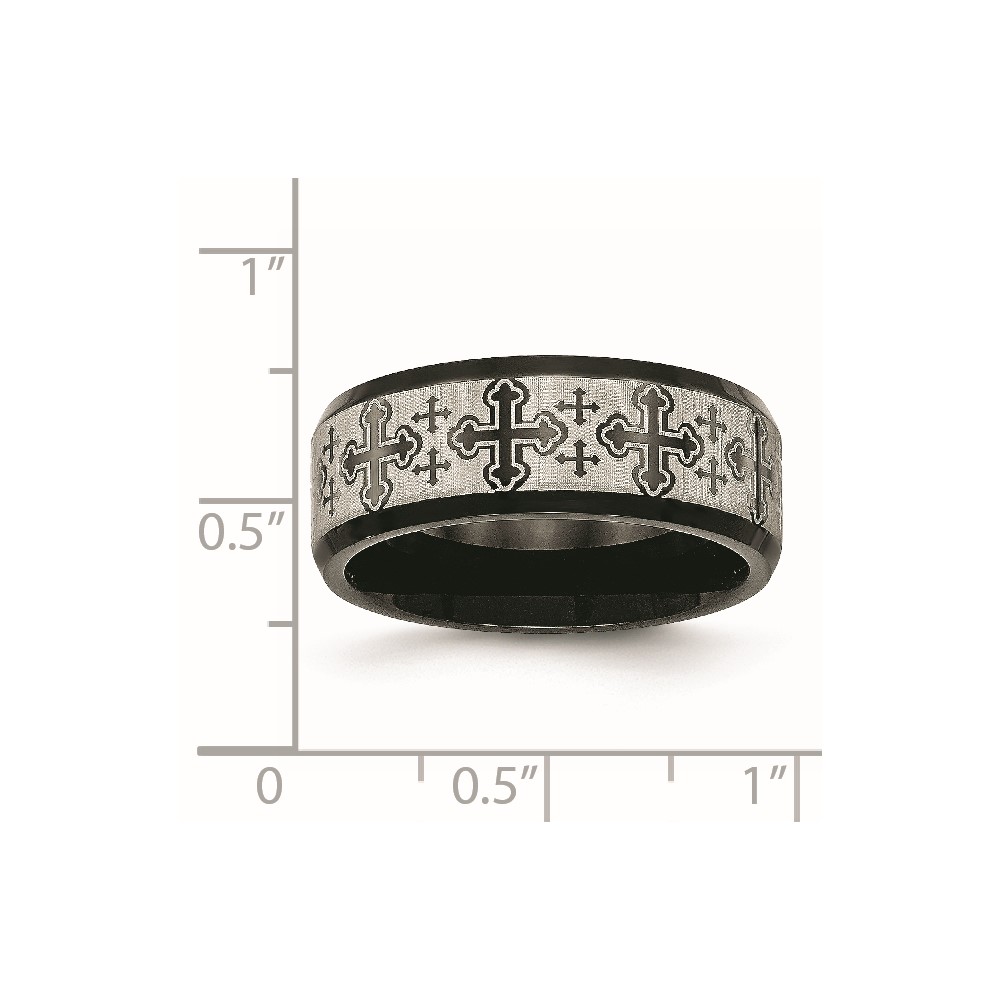 Stainless Steel Brushed/Polished Black IP Laser Etched Crosses 8mm Band