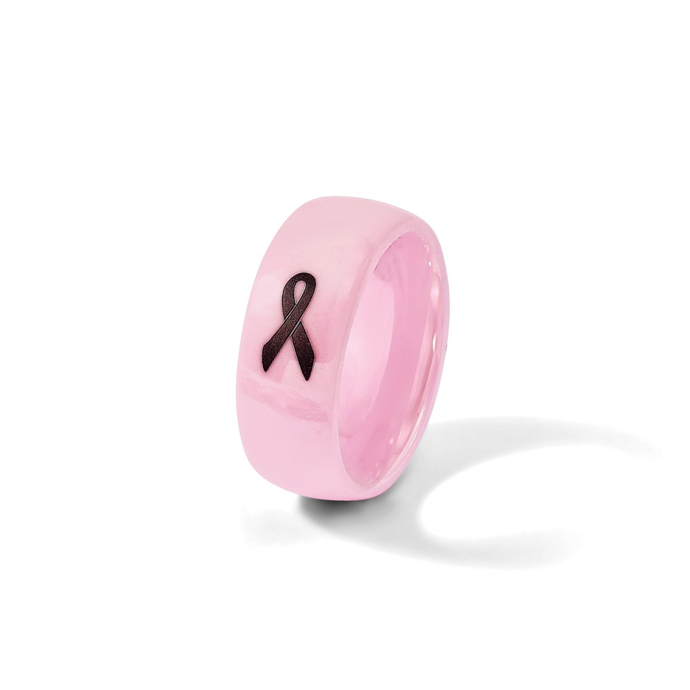 Chisel Ceramic Pink Black Laser Accented Ribbon 8mm Polished Band