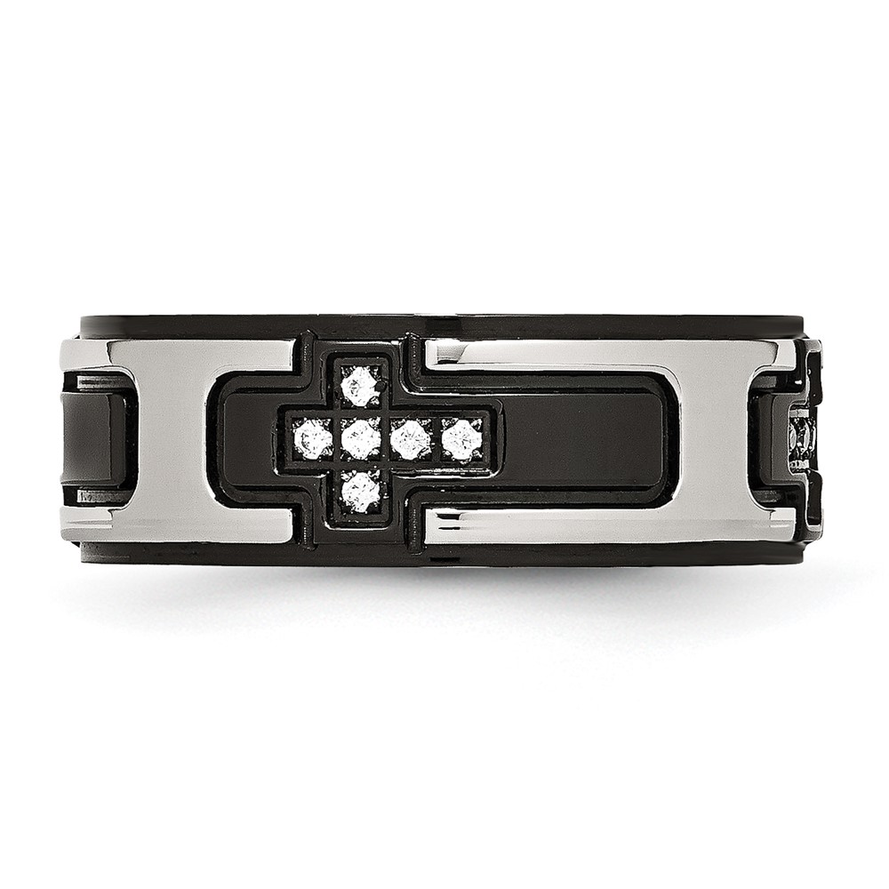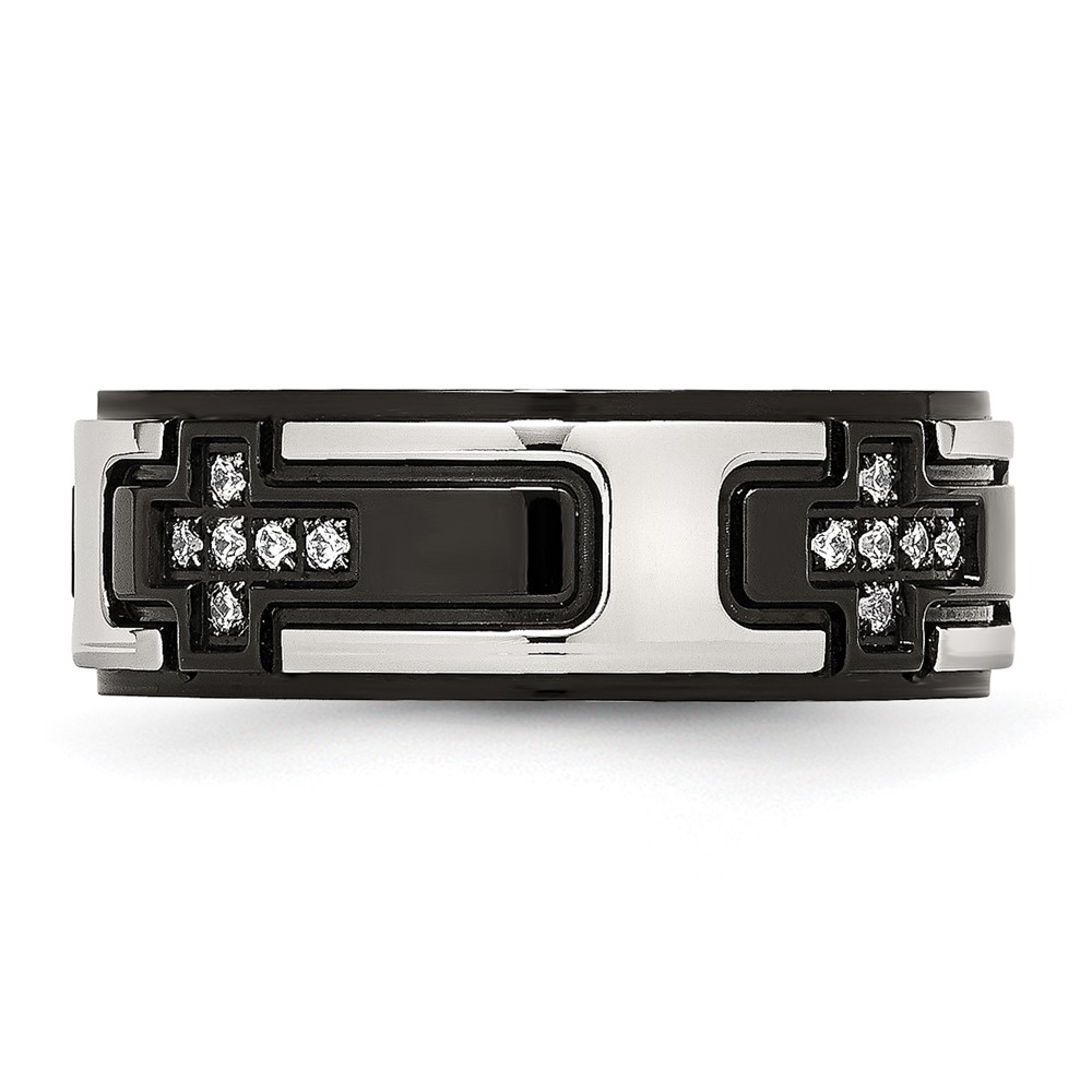 Stainless Steel Polished Black IP-plated with CZ Cross 8mm Band
