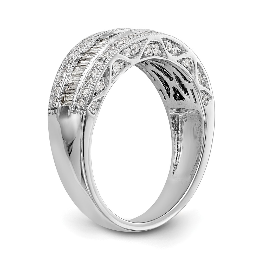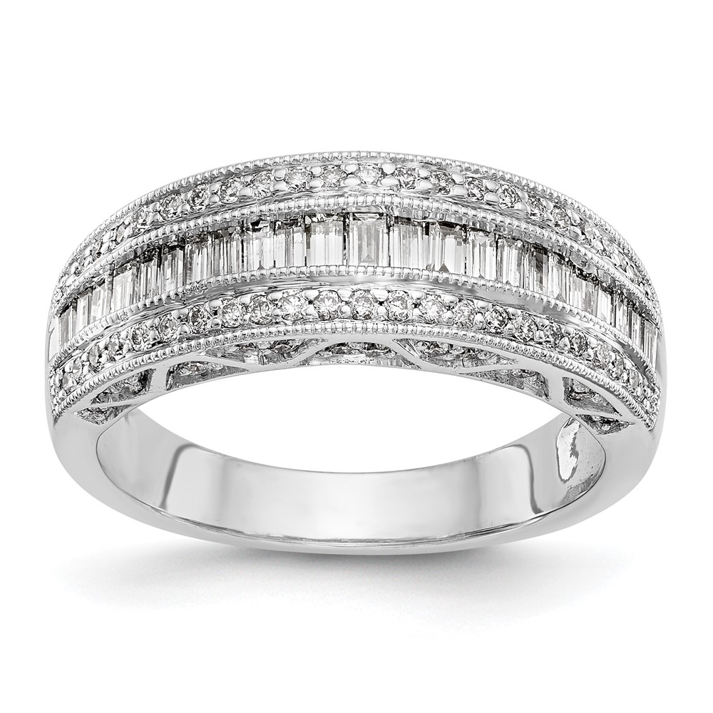 14K White Gold 3/4 carat Baguette/Round Diamond Complete Band