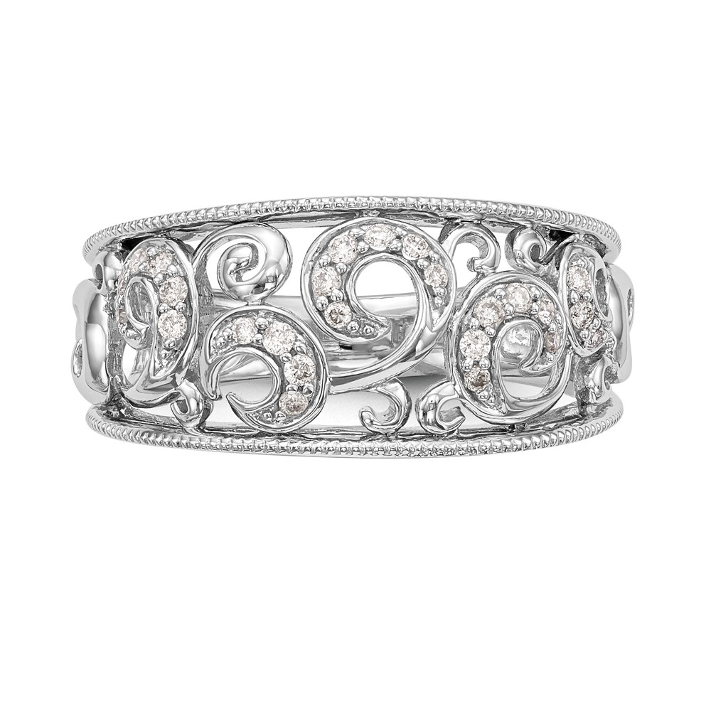 14K White Gold Swirled 1/6 carat Complete Diamond Band