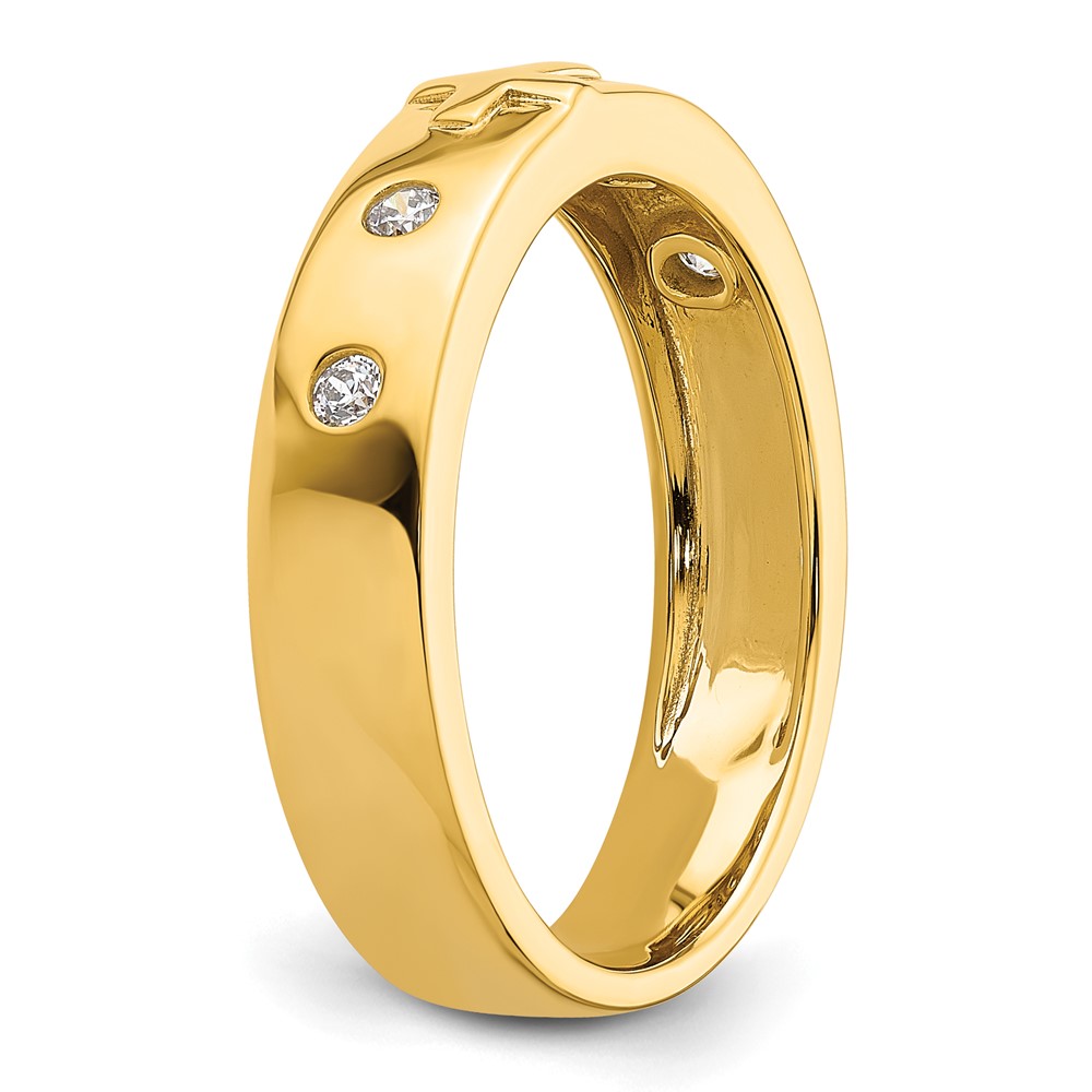 14k Cross Diamond Mens Complete Wedding Band