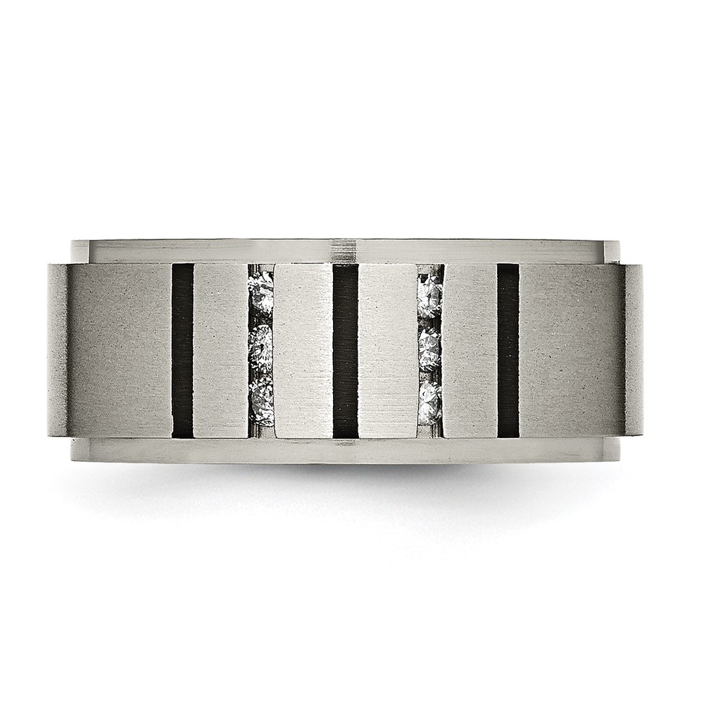 Chisel Titanium Brushed and Polished Black IP-plated 0.15 Carat Diamond 9mm Band
