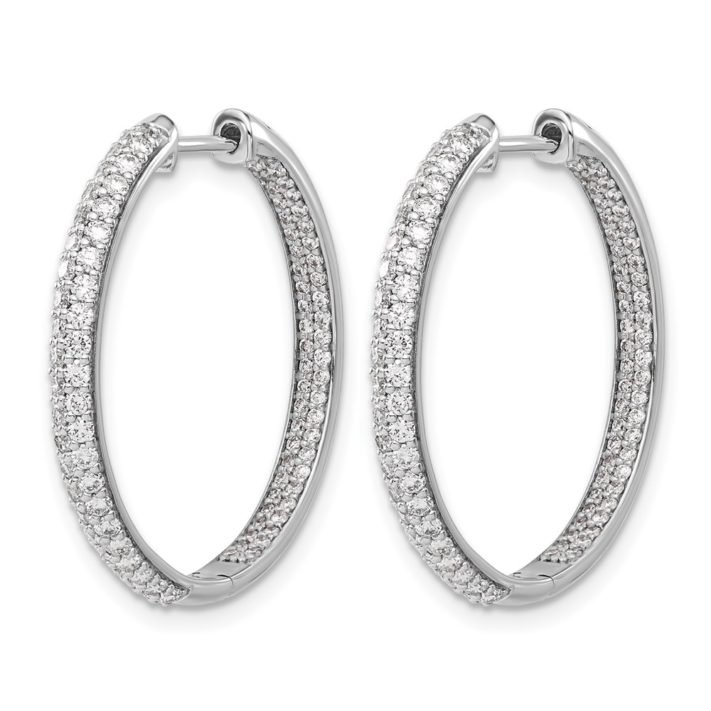 14k White Gold 2-row 1.5 carat Diamond In/Out Hinged Hoop Earrings