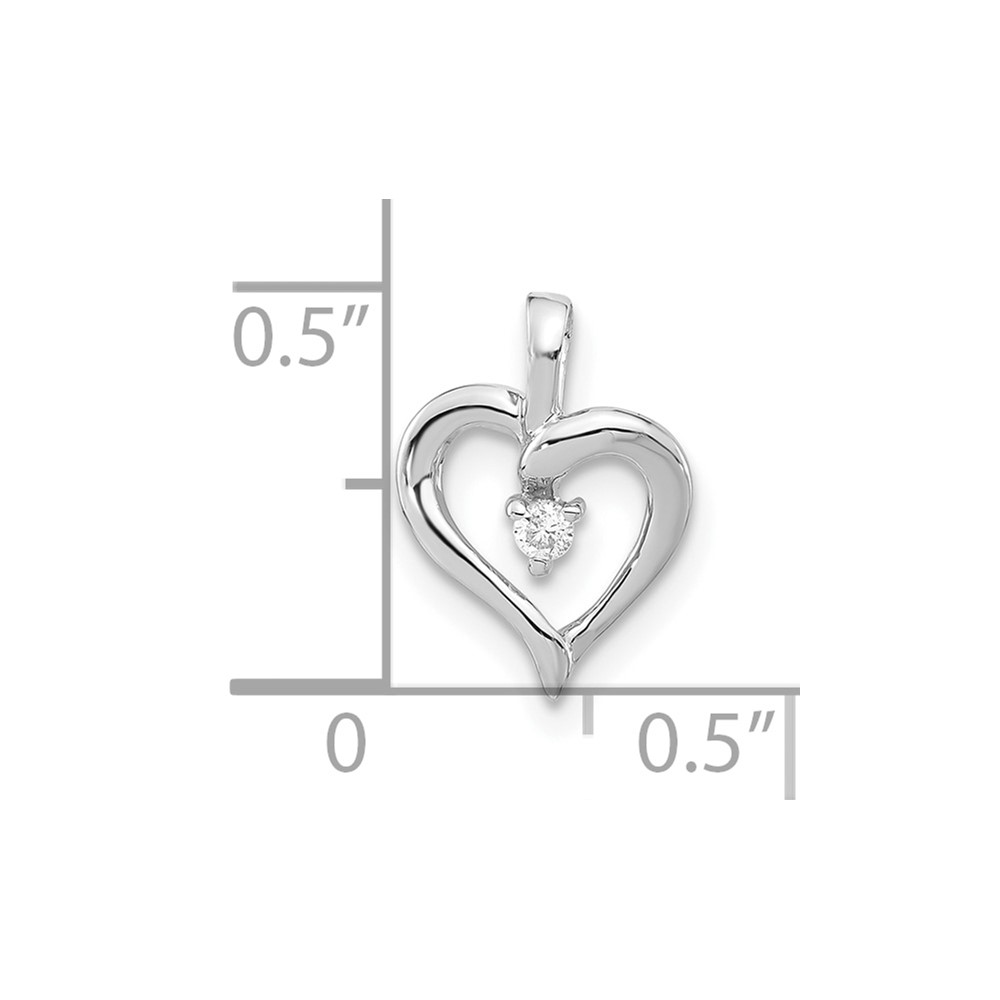 10k White Gold Polished Diamond Heart Pendant, No chain