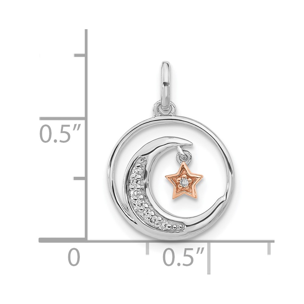 Sterling Silver w/ 10k Rose Accent Diamond Star & Moon Pendant