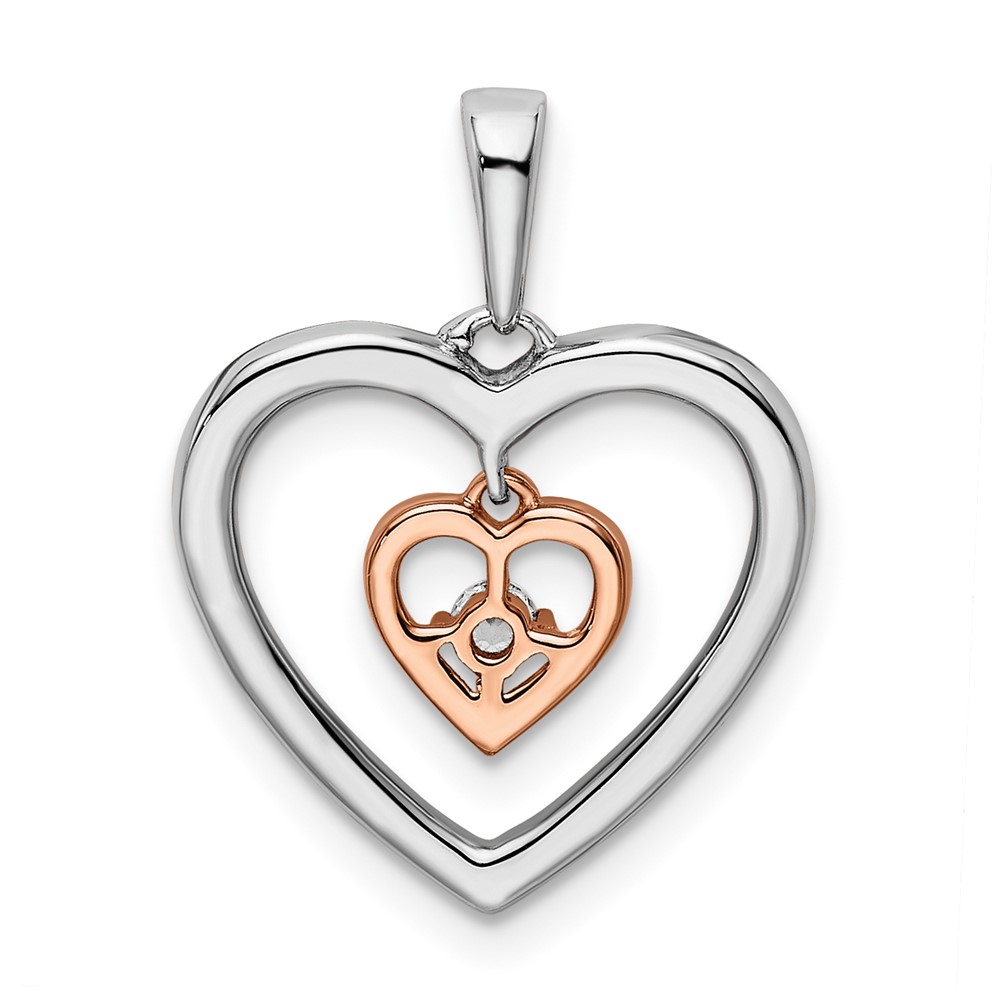14k Two-tone White and Rose 1/20 carat Diamond Double Heart Pendant