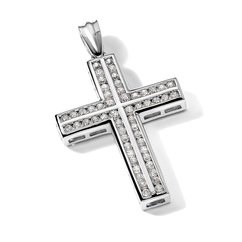 14k White Gold 1 carat Lab Grown Diamond VS/SI+ G+ Complete Double Cross Pendant