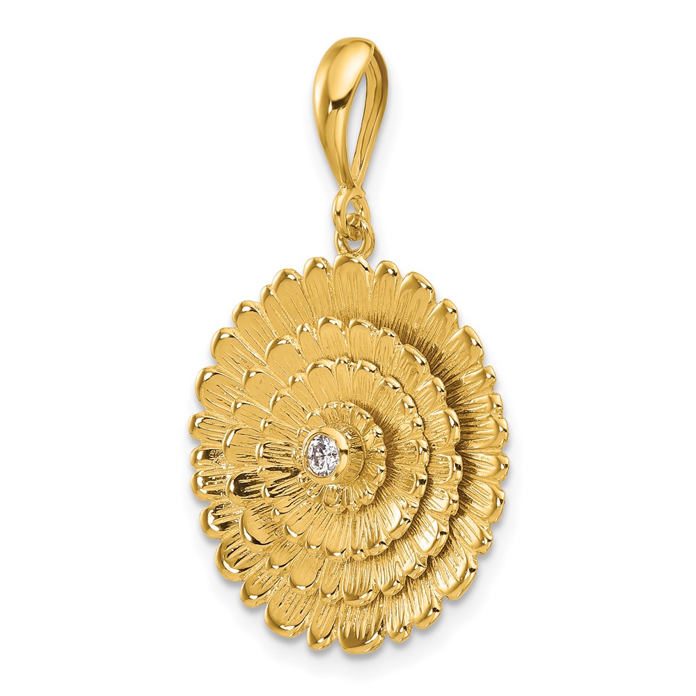 Herco 14K Polished and Textured Diamond Layered Flower Pendant